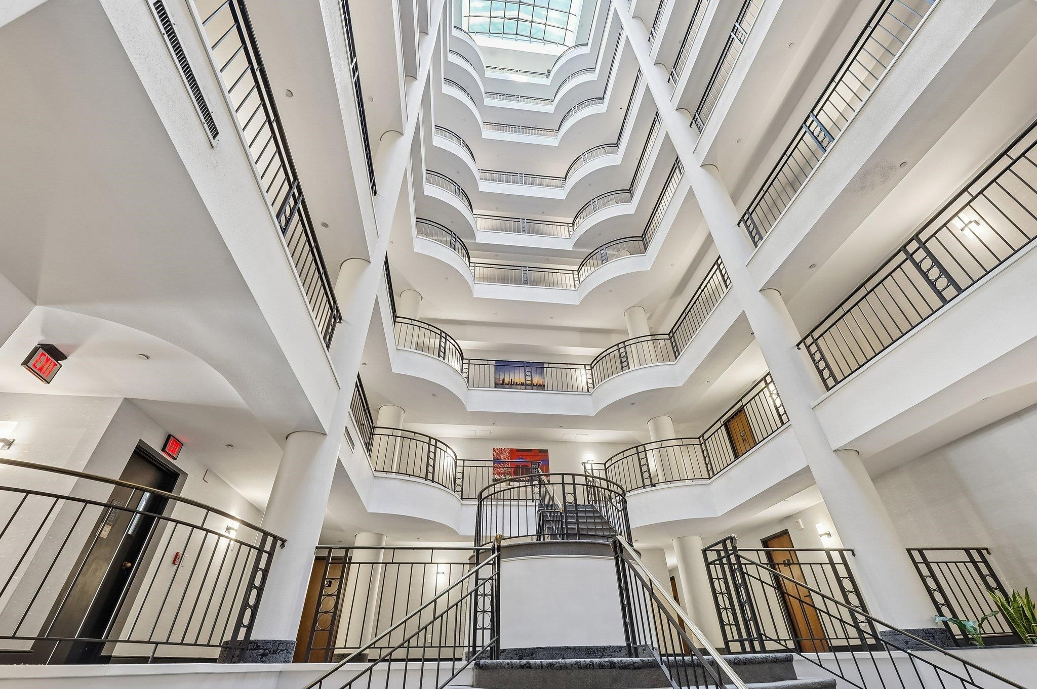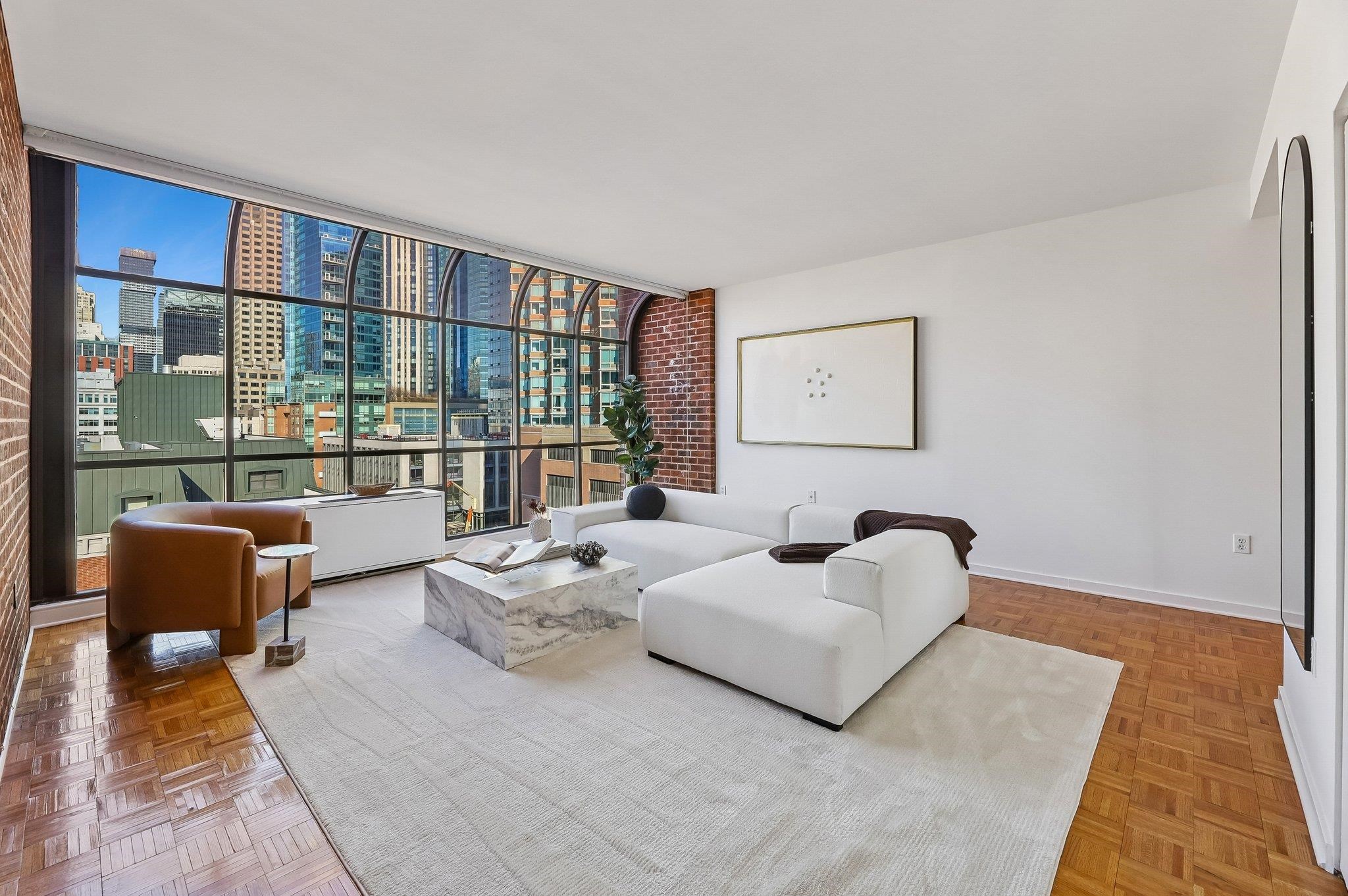 PAULUS HOOK PENTHOUSE LOFT with spectacular, panoramic, skyline views and private terrace! Set atop the full service Clermont Cove awaits this dramatic, TriBeCa style beauty with over 1,000 sq. feet of glass, glamour, and utter uniqueness. Enter to massive, open-concept spaces, flooded with natural light through floor-to-ceiling curved architectural windows! The expansive city skyline is a total jaw dropper, serving as your moving artwork any time of day or night. Your primary bathroom suite is grand in scale and features a two person jetted tub, as well as separate shower enclosure, dressing area, and large vanity. A separate powder room makes this the quintessential home for entertaining all your family and friends, while the functional kitchen features updated s/s appliances, abundant hardwood cabinetry, and plenty of prep space. Walls of exposed brick, sky high ceilings, and Penthouse level privacy complete the picture. Still want more? How about a direct access private terrace for alfresco dining, morning coffee, or a good read. One valet parking space is included in the onsite garage for your favorite ride, and heat/hot water is also included. 1 Greene at Clermont Cove is a full service luxury building featuring 24hr. concierge/security, gleaming waterfront outdoor pool and hot tub, grill station, gym, community sky room and lounge, on-site storage, and more! Lovely, recently renovated common areas, inside and out. Enjoy this fantastic neighborhood with phenomenal dining, shopping, waterfront boardwalk/promenade, Whole Foods Market ,PS/16 Bradford school district, and minutes to NYC via the PATH/NYWaterway, right outside your front door. An incredible opportunity for one of the most fashionable properties on the Hudson River Waterfront!