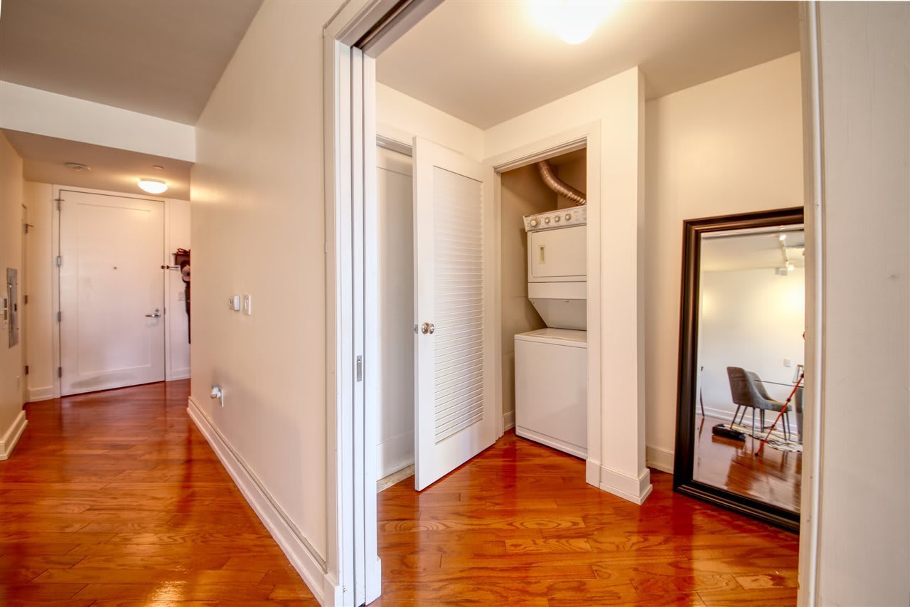 LOCATION, LUXURY, AND LIFESTYLE!! Located at the crossroads of Paulus Hook and Exchange Place, this oversized 1 bedroom, 1 bath residence is sure to impress! This turnkey residence shows like new, with gleaming hardwood floors, oversized kitchen with granite countertops and stainless steel appliances, lovely spa like bathroom, huge closets, high ceilings, and large windows streaming with natural light. An individual, deeded storage space is included for all your excess items. The ultra stylish Montgomery Greene condominium features the best of resident amenities including a full gym, residents lounge, 24 hour attended lobby, on site garage parking, and a roof top sky terrace complete with outdoor kitchen, wet bar, and shower! Walk outside your door to the PATH train or ferry, and you'll arrive in NYC in MINUTES. Truly an exceptional opportunity! Tax abatement on building until 2027.