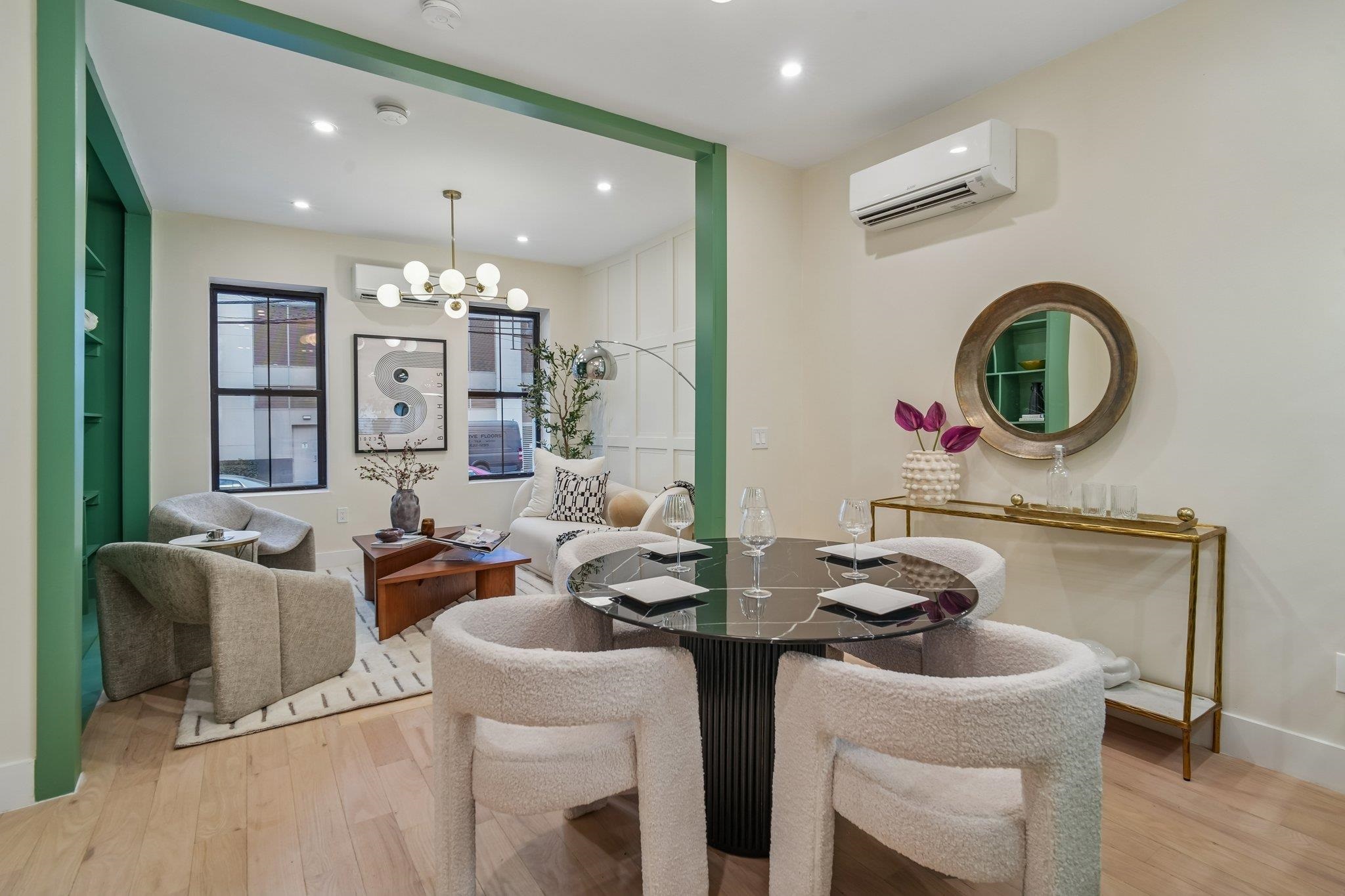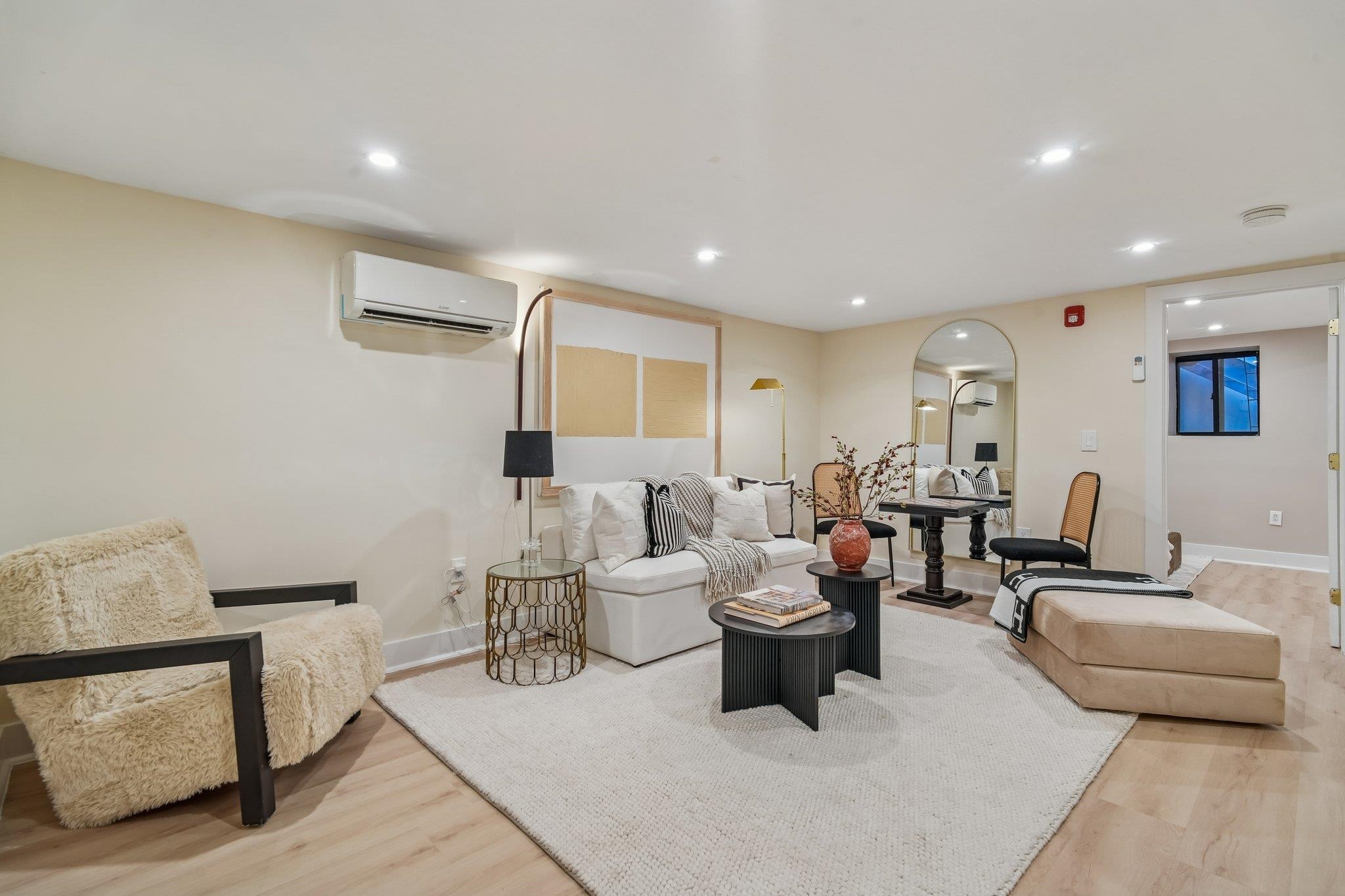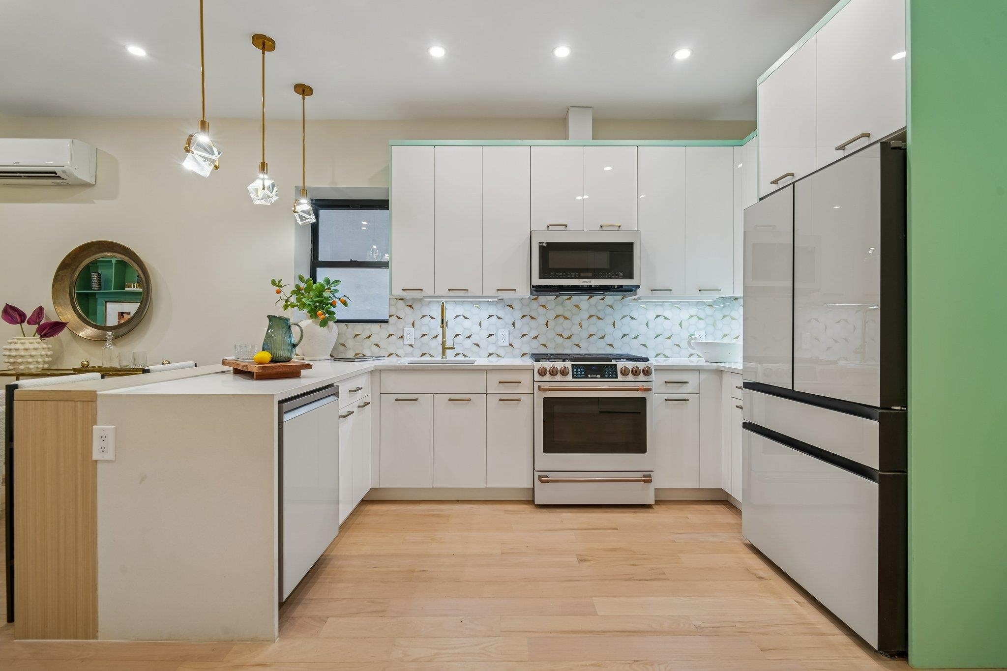 Sprawling 3 bedroom, 3 bath, Powerhouse Arts District stunner offering 1,750 sq. ft. of luxury! A complete renovation in 2023, this fabulous DUPLEX has it all and is the perfect family-sized home. Enter your open concept primary level featuring soaring ceilings, hardwood floors, chef's kitchen with a full suite of Samsung smart technology appliances, quartz countertops, breakfast bar, and stone backsplash. The living room (one of two!) features a custom architectural built-in, beautiful light installations, and is perfect entertaining space, while the separate dining area is meant for memorable meals with family and friends. Your primary bedroom suite is off the main living space for privacy and convenience, featuring king-sized proportions, a fabulous private deck which is perfect for morning coffee or a yoga pose, double closets, and a stunning windowed spa bath with freestanding soaking tub, and separate stone shower. A guest powder room with large format stone tile is smartly placed on this level as well. Downstairs is the perfect space for family, friends, and children...complete with another large family room, two bedrooms, full-sized W/D, another beautiful full bathroom, and a huge storage room which leads to a second private outdoor space! Want more? You are less than two minutes from the Grove St PATH! Imagine being at any number of locations in NYC in 15 minutes or so......the perfect commute. Right outside your front door awaits phenomenal restaurants, shopping, Whole Foods, Starbucks, Base Gym, and the Newark Ave pedestrian mall. A truly remarkable opportunity to own a large, Downtown home, at a fabulous price point.