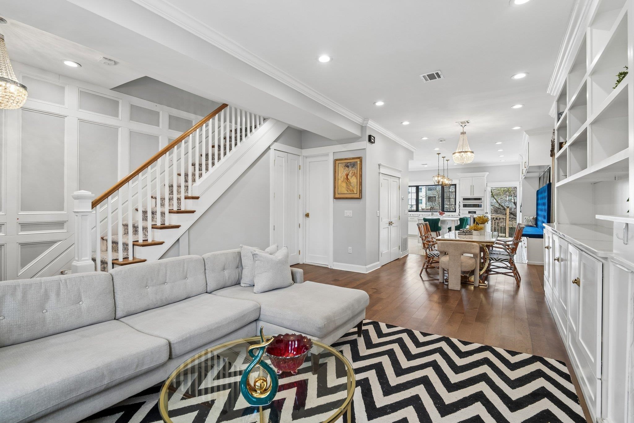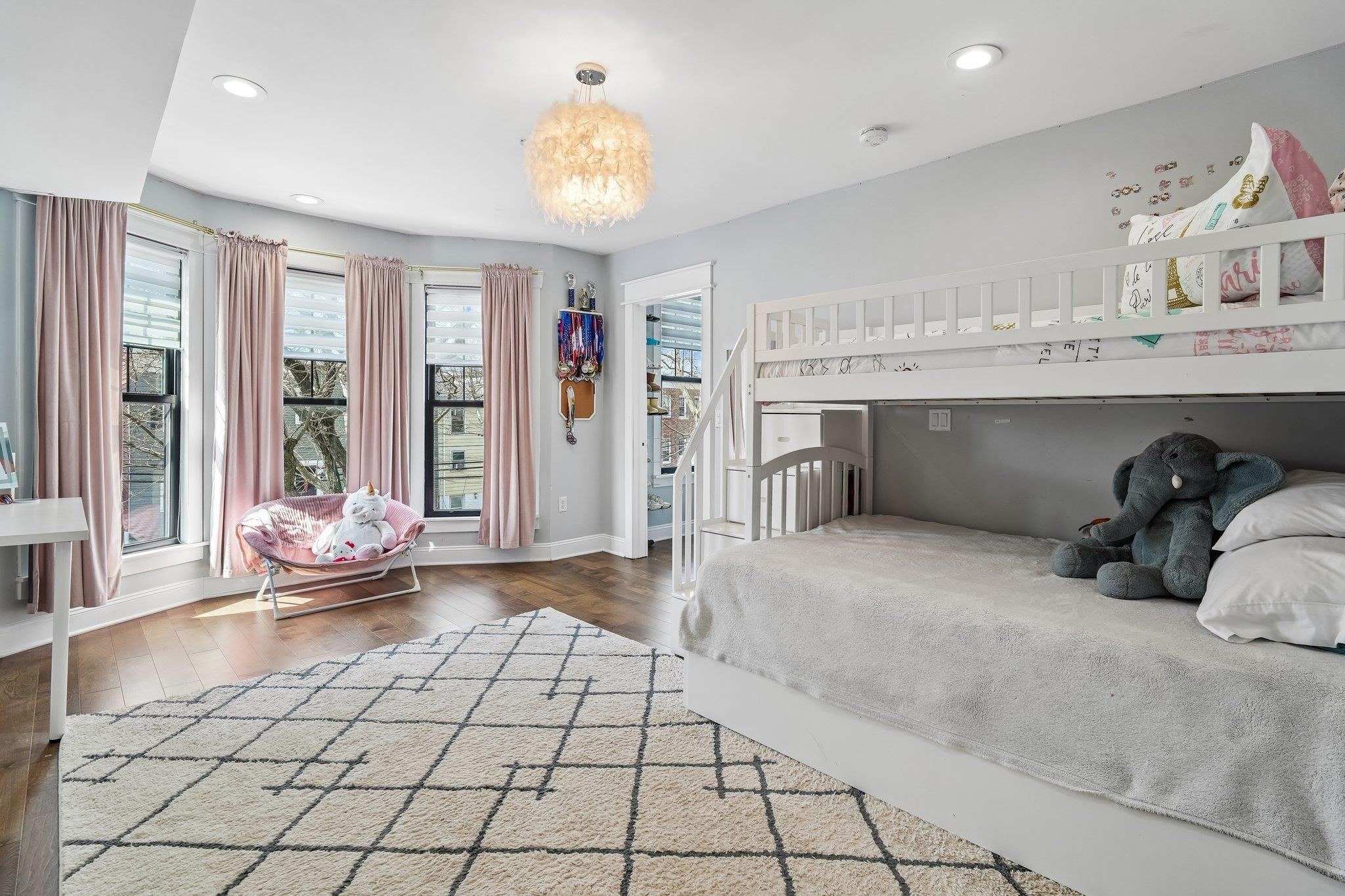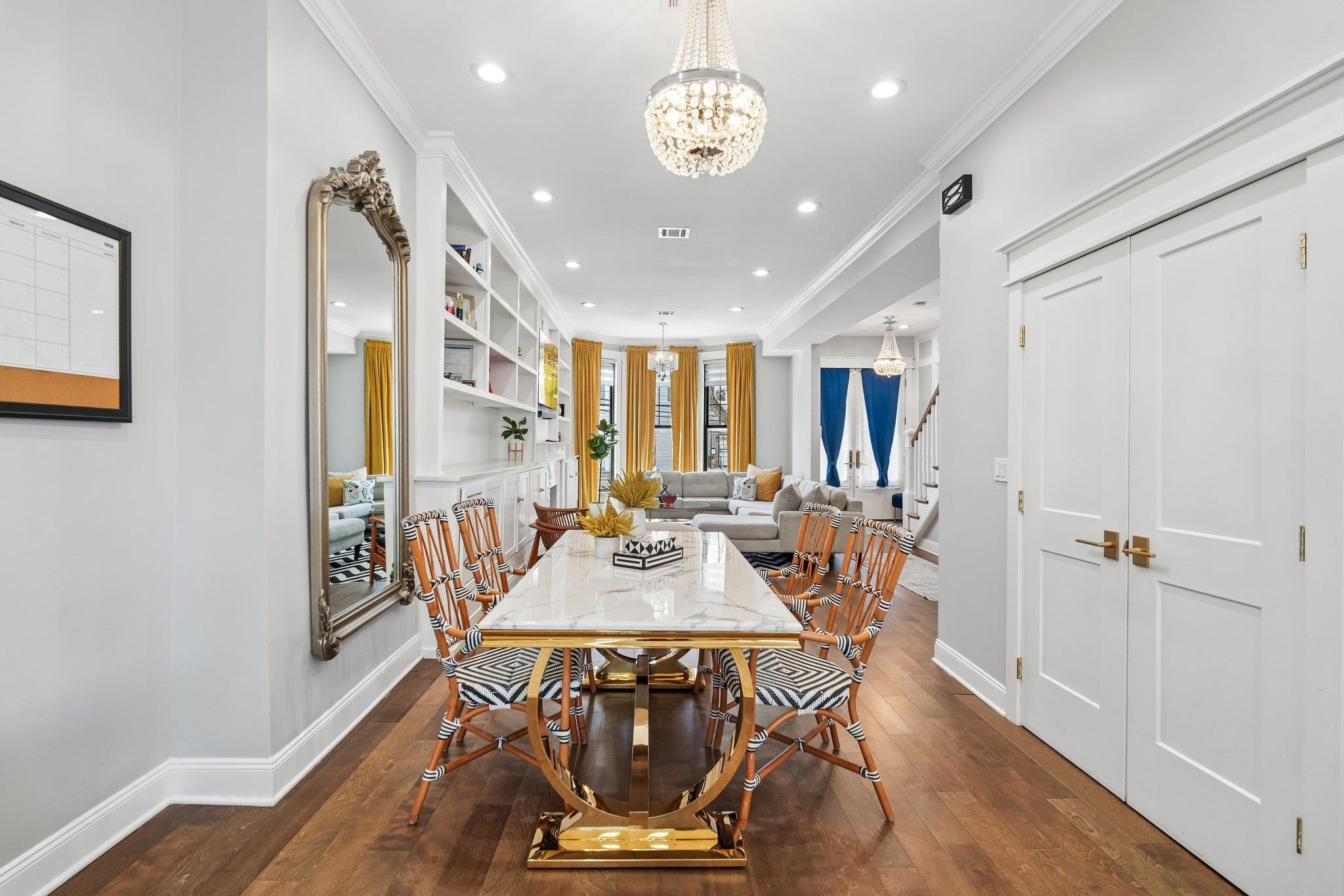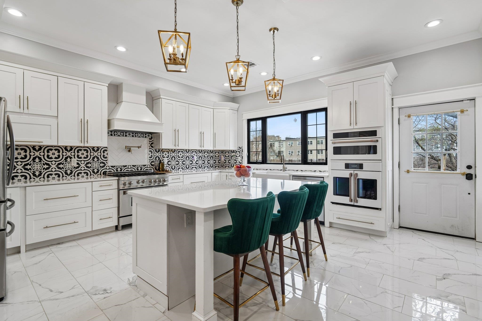 Absolutely stunning, magazine worthy, 2-family home, with over 3,500 sq. ft. of fabulous living. Located in the uber-desirable Hilltop section, this grand residence, perched on a 25x100 lot, has been meticulously renovated to the highest of standards! Double entry doors lead into your private foyer showcasing high ceilings, bespoke detail, and wide open concept living/dining spaces. Your living room is bathed in sunlight through a grand, double height, bay window. This central entertaining space features a fireplace, flanked by custom built-in wall units, crystal chandeliers, and gleaming "mocha" hardwood floors. The living space flows seamlessly into the dining room, which is large enough for all your family and friends. Your chef's grade, professional kitchen, is simply magical......sweeping, open space, huge center island clad in the finest stone, 2 professional ranges, vented range hood, pot filler, s/s appliances, shiplap built-ins for your backpacks, shoes, and coats, as well as a custom wall banquette finished in trypan blue tufted velvet! A morning deck off the kitchen leads directly to your private patio and sprawling, fenced yard, complete with synthetic lawn for outdoor enjoyment, sports, and activities. On the second level of this impressive residence awaits a full family room for gaming, movie nights, or even some homework, plus three beautiful bedrooms and a large, spa bathroom, with floating vanity and custom tile. The entire top floor of the home is dedicated as the owner's sanctuary, with beyond king-sized proportions, including an additional seating/home office/nursery space, one of the largest California-style walk in closets imaginable, and quite possibly the most beautiful bathroom in Hudson County. A study in today's design, featuring a full wet room with egg shaped soaking tub, numerous jets and sprays, fabulous stone and tile work, and dual floating vanity with linear drain. Want more? There is a full garden apartment with separate entrance on the first floor. This entirely separated space features it's own living room, gourmet kitchen, bedroom, and luxurious full bath, lending itself for a limitless uses. A private driveway awaits out front for your favorite ride. Notable PS5/Conte school district and the JSQ PATH await for transportation ease. This is the one not to be missed!