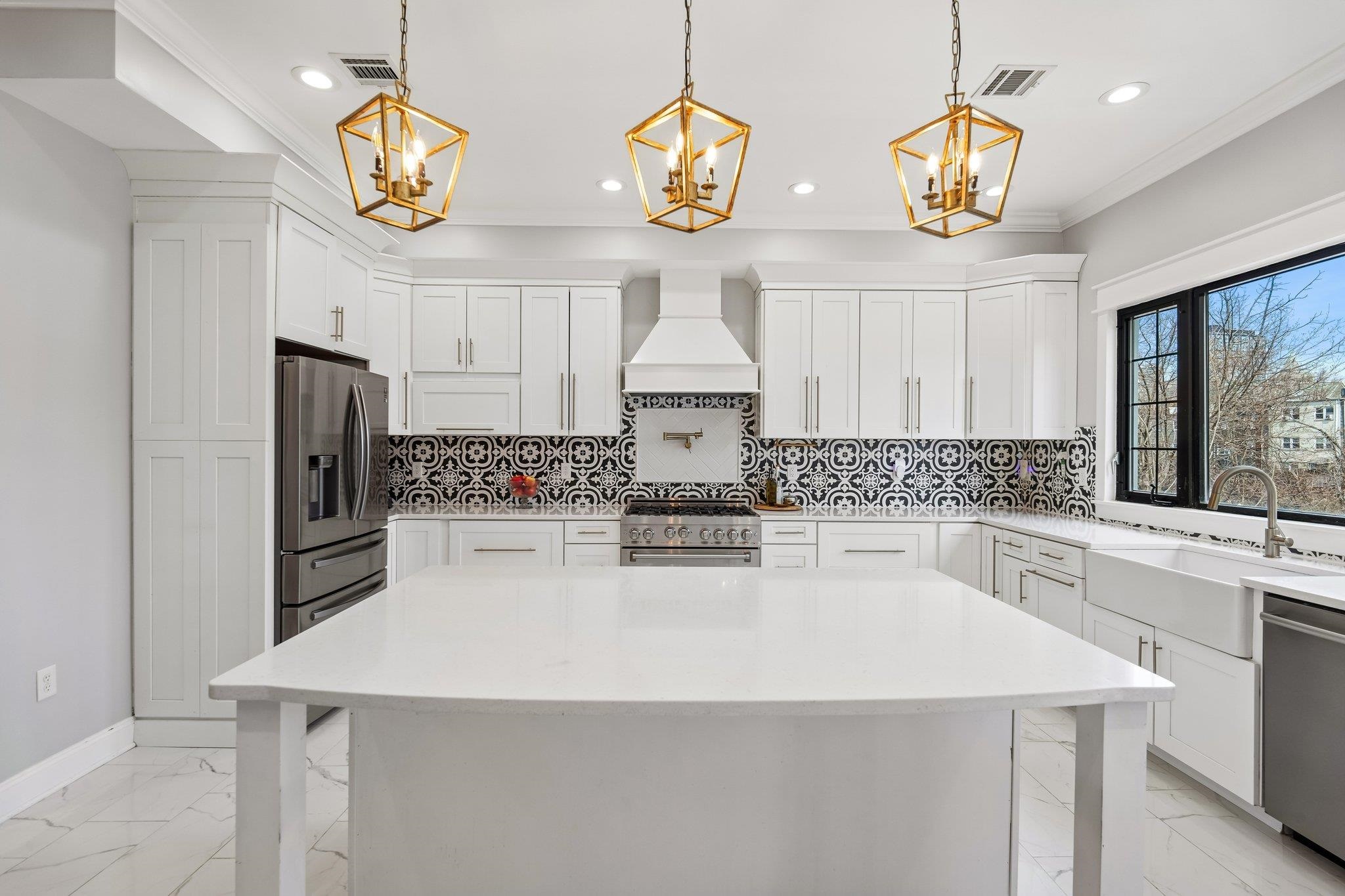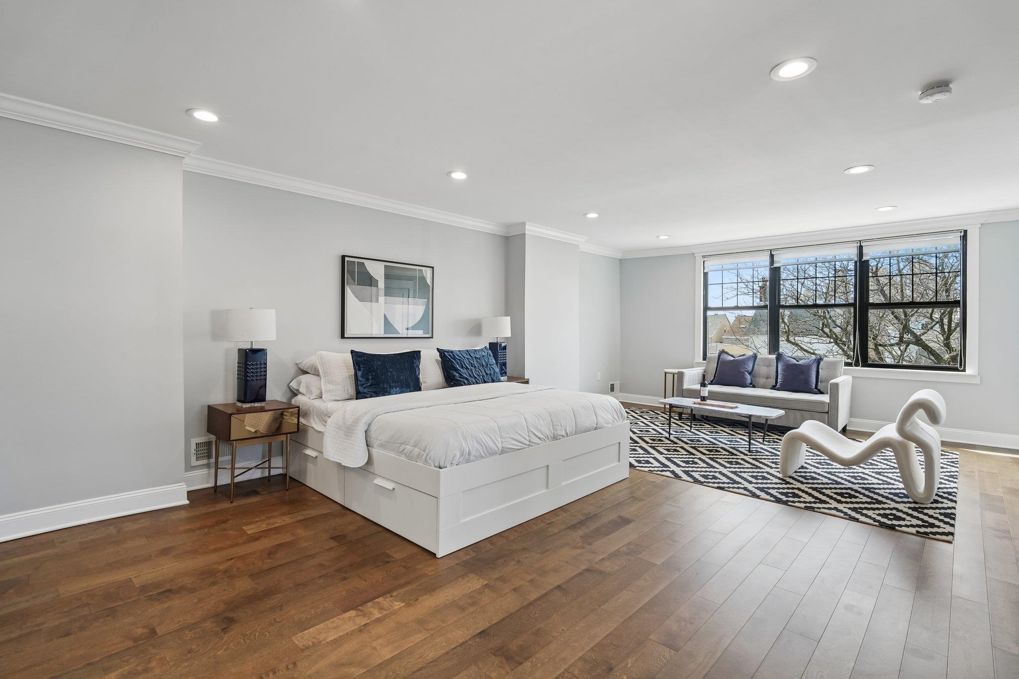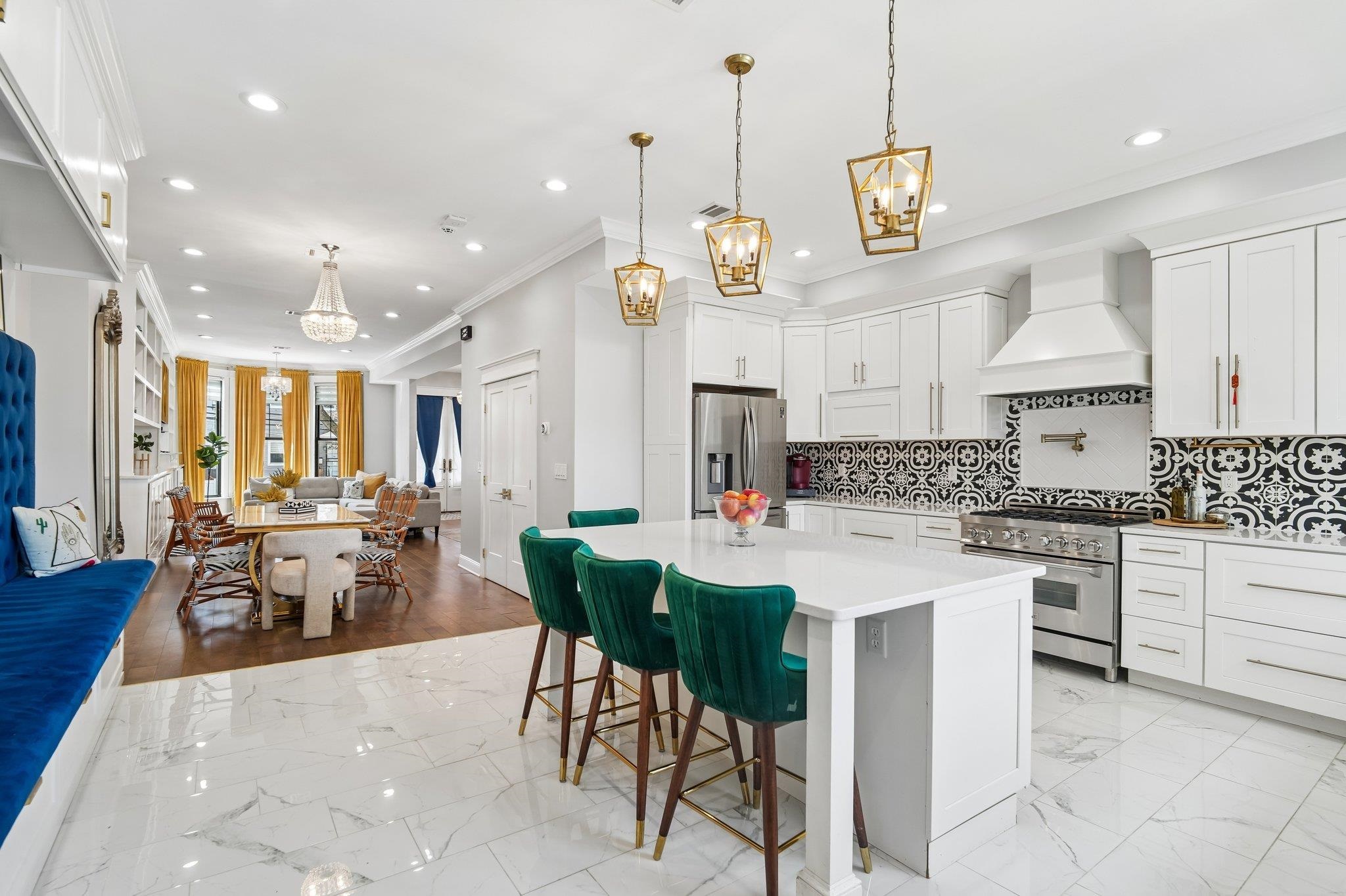 Absolutely stunning, magazine worthy, 2-family home, with over 3,500 sq. ft. of fabulous living. Located in the uber-desirable Hilltop section, this grand residence, perched on a 25x100 lot, has been meticulously renovated to the highest of standards! Double entry doors lead into your private foyer showcasing high ceilings, bespoke detail, and wide open concept living/dining spaces. Your living room is bathed in sunlight through a grand, double height, bay window. This central entertaining space features a fireplace, flanked by custom built-in wall units, crystal chandeliers, and gleaming "mocha" hardwood floors. The living space flows seamlessly into the dining room, which is large enough for all your family and friends. Your chef's grade, professional kitchen, is simply magical......sweeping, open space, huge center island clad in the finest stone, 2 professional ranges, vented range hood, pot filler, s/s appliances, shiplap built-ins for your backpacks, shoes, and coats, as well as a custom wall banquette finished in trypan blue tufted velvet! A morning deck off the kitchen leads directly to your private patio and sprawling, fenced yard, complete with synthetic lawn for outdoor enjoyment, sports, and activities. On the second level of this impressive residence awaits a full family room for gaming, movie nights, or even some homework, plus three beautiful bedrooms and a large, spa bathroom, with floating vanity and custom tile. The entire top floor of the home is dedicated as the owner's sanctuary, with beyond king-sized proportions, including an additional seating/home office/nursery space, one of the largest California-style walk in closets imaginable, and quite possibly the most beautiful bathroom in Hudson County. A study in today's design, featuring a full wet room with egg shaped soaking tub, numerous jets and sprays, fabulous stone and tile work, and dual floating vanity with linear drain. Want more? There is a full garden apartment with separate entrance on the first floor. This entirely separated space features it's own living room, gourmet kitchen, bedroom, and luxurious full bath, lending itself for a limitless uses. A private driveway awaits out front for your favorite ride. Notable PS5/Conte school district and the JSQ PATH await for transportation ease. This is the one not to be missed!