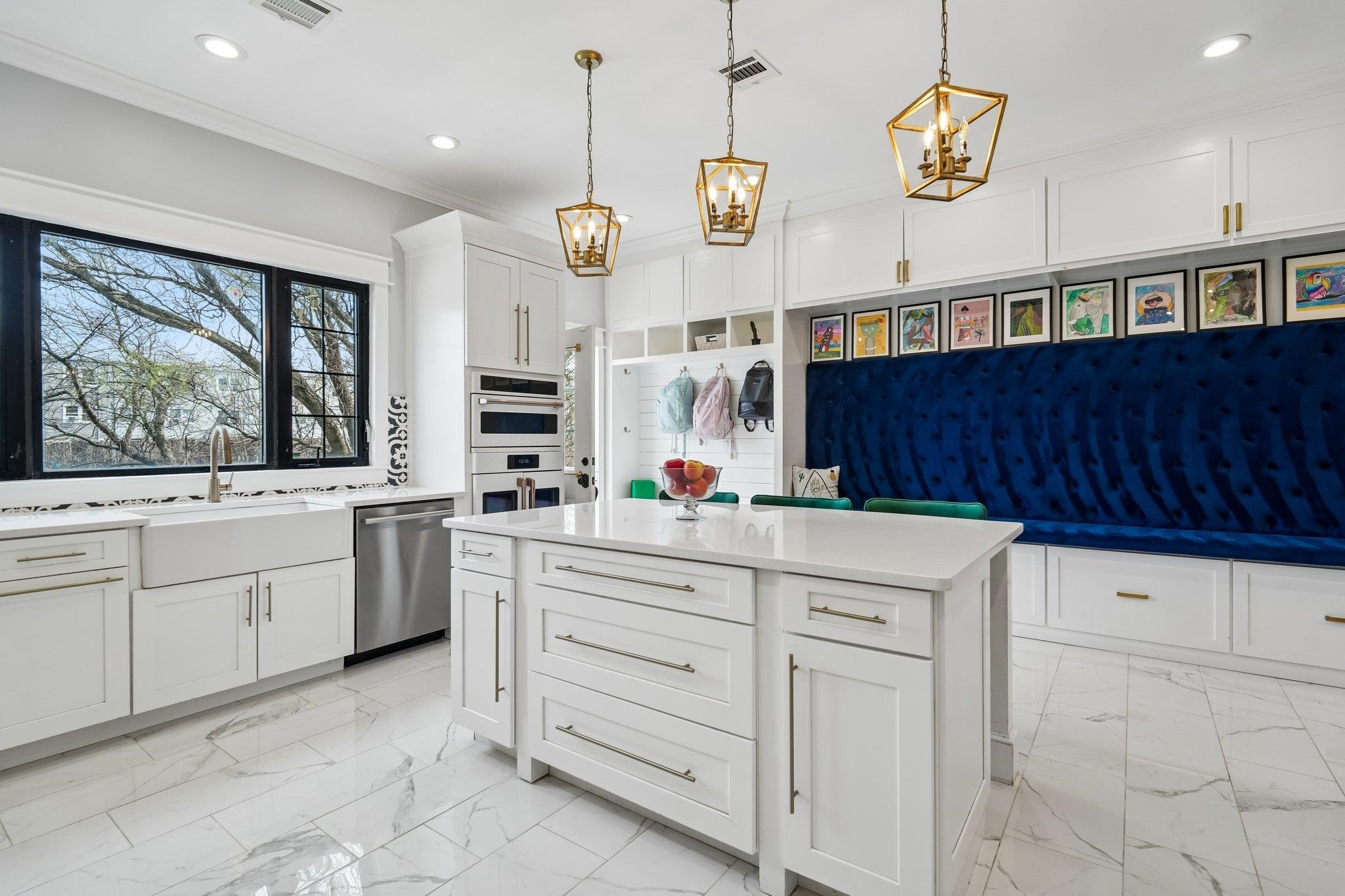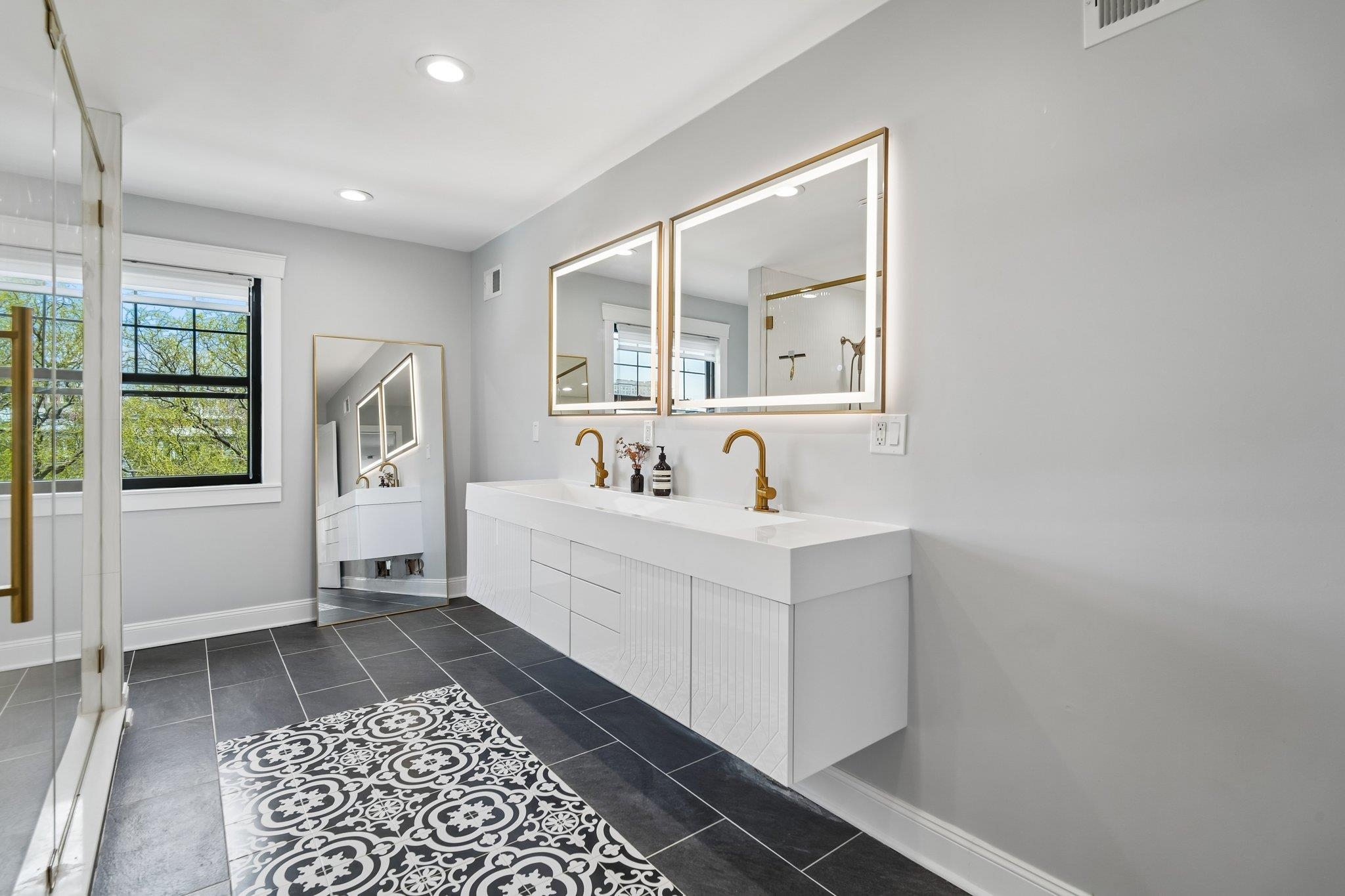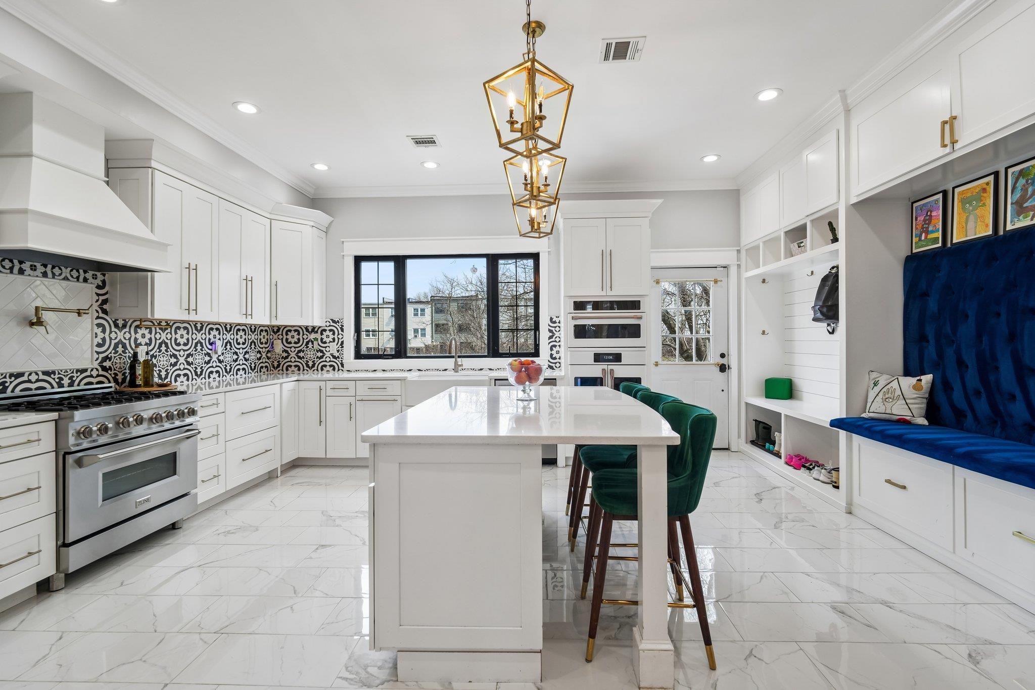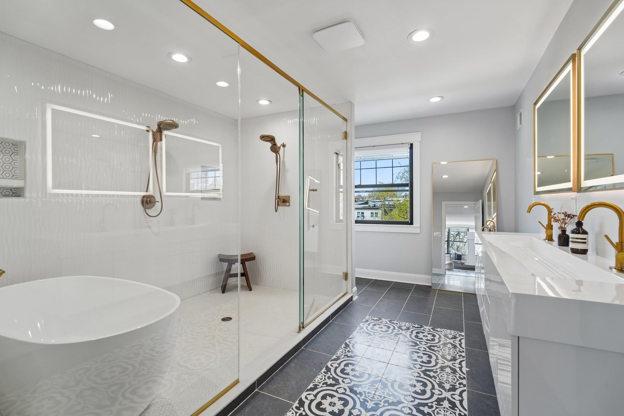 Absolutely stunning, magazine worthy, 2-family home, with over 3,500 sq. ft. of fabulous living. Located in the uber-desirable Hilltop section, this grand residence, perched on a 25x100 lot, has been meticulously renovated to the highest of standards! Double entry doors lead into your private foyer showcasing high ceilings, bespoke detail, and wide open concept living/dining spaces. Your living room is bathed in sunlight through a grand, double height, bay window. This central entertaining space features a fireplace, flanked by custom built-in wall units, crystal chandeliers, and gleaming "mocha" hardwood floors. The living space flows seamlessly into the dining room, which is large enough for all your family and friends. Your chef's grade, professional kitchen, is simply magical......sweeping, open space, huge center island clad in the finest stone, 2 professional ranges, vented range hood, pot filler, s/s appliances, shiplap built-ins for your backpacks, shoes, and coats, as well as a custom wall banquette finished in trypan blue tufted velvet! A morning deck off the kitchen leads directly to your private patio and sprawling, fenced yard, complete with synthetic lawn for outdoor enjoyment, sports, and activities. On the second level of this impressive residence awaits a full family room for gaming, movie nights, or even some homework, plus three beautiful bedrooms and a large, spa bathroom, with floating vanity and custom tile. The entire top floor of the home is dedicated as the owner's sanctuary, with beyond king-sized proportions, including an additional seating/home office/nursery space, one of the largest California-style walk in closets imaginable, and quite possibly the most beautiful bathroom in Hudson County. A study in today's design, featuring a full wet room with egg shaped soaking tub, numerous jets and sprays, fabulous stone and tile work, and dual floating vanity with linear drain. Want more? There is a full garden apartment with separate entrance on the first floor. This entirely separated space features it's own living room, gourmet kitchen, bedroom, and luxurious full bath, lending itself for a limitless uses. A private driveway awaits out front for your favorite ride. Notable PS5/Conte school district and the JSQ PATH await for transportation ease. This is the one not to be missed!