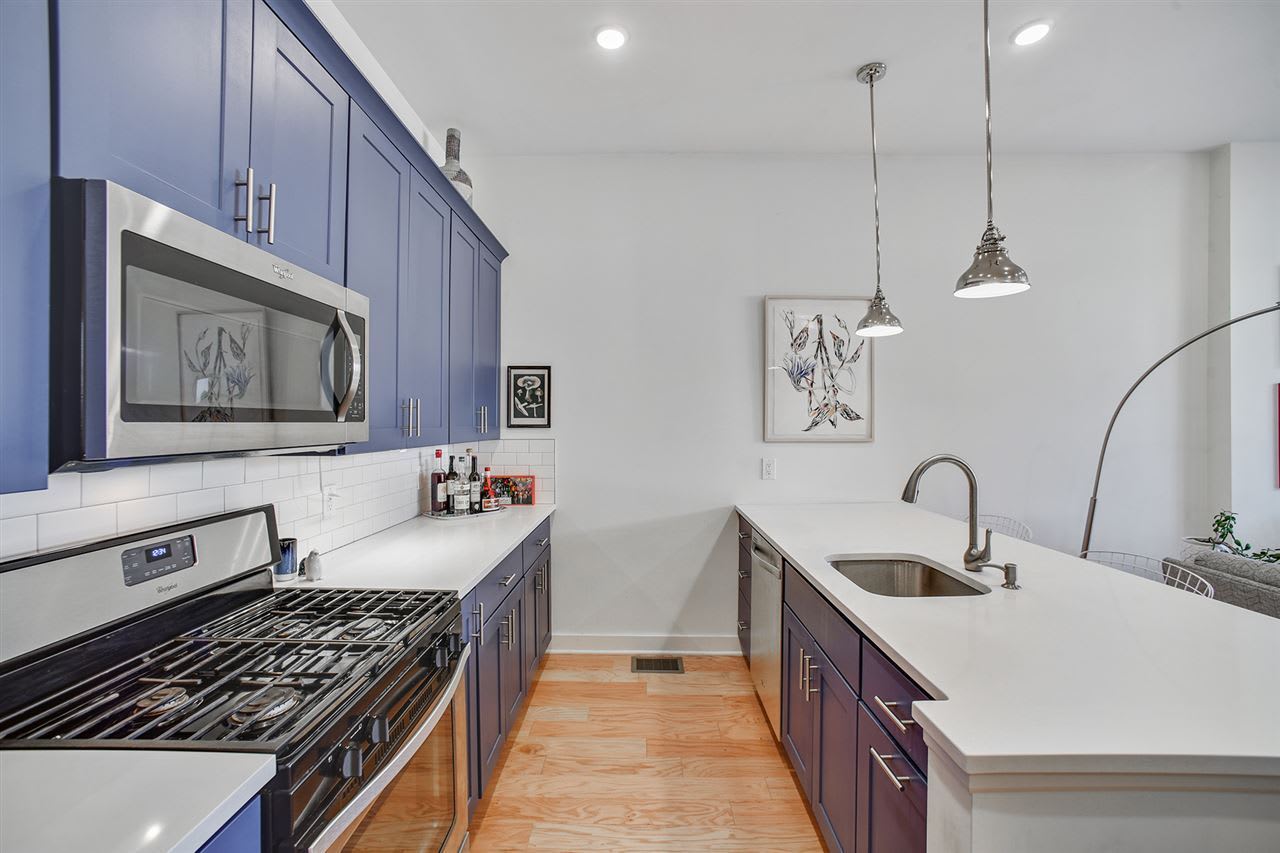 You can have it all in The Heights – 3 bedrooms, 2 baths, parking, storage AND a private yard! This bright, open home features soaring 9' ceilings with recessed lighting, solid oak floors, Andersen Windows, custom tile bathrooms with upgraded fixtures, central AC, in-unit washer/dryer and keyless entry. The eat-in chef's kitchen is complete with stainless steel appliances, quartz counters and custom finished shaker cabinets and is open to the main living area. Two large bedrooms are anchored by a beautiful main windowed bathroom. The master bedroom features a large walk-in closet, bright picture windows & en-suite bath w/ custom glass shower. Step outside to your own private yard with custom landscaping! Over 200 square feet of storage available on the lower level. Steps to shopping, dining and NYC transportation. Don't miss out on the best that The Heights has to offer!