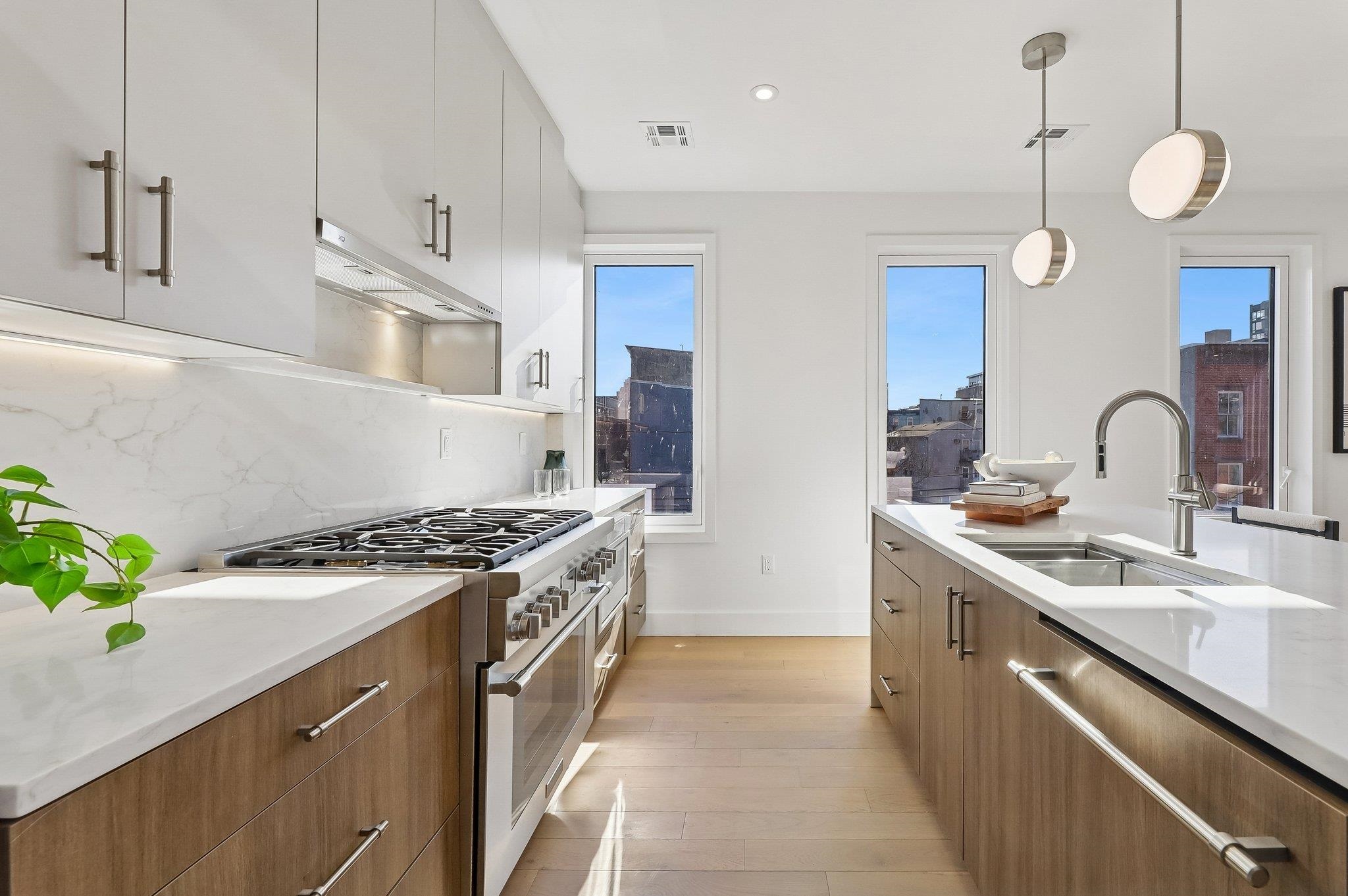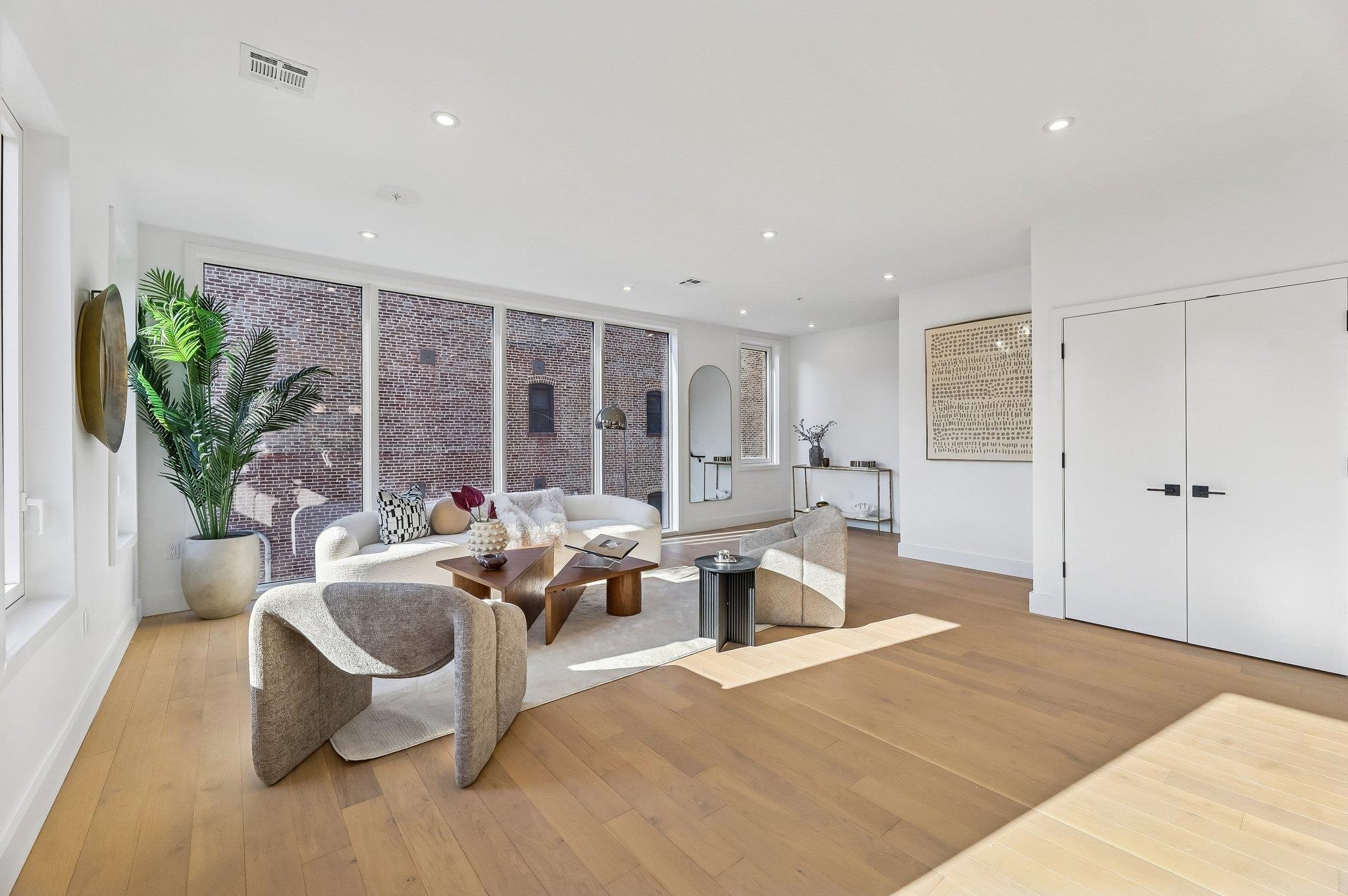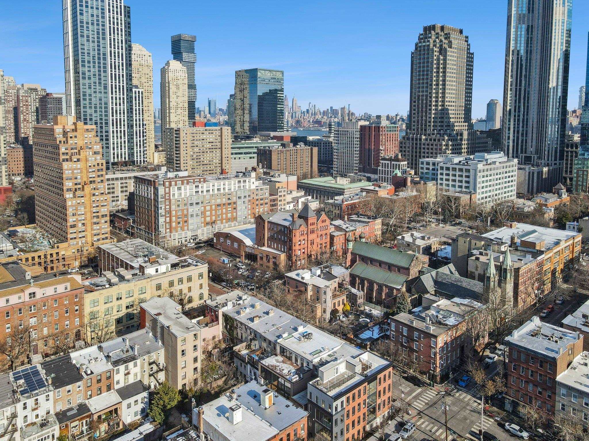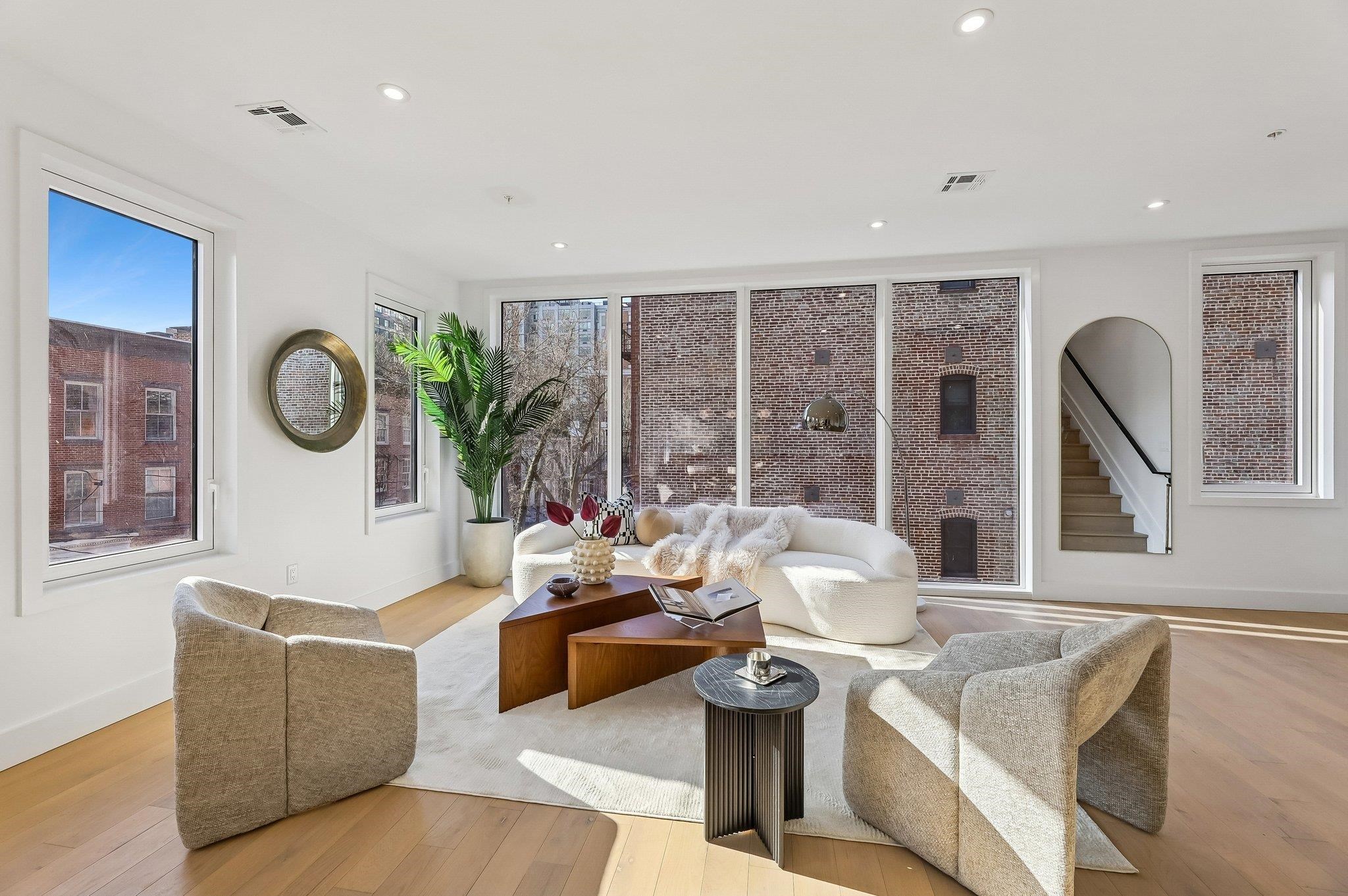Brand New Construction in the Heart of Paulus Hook! At the crossroads of Warren and Sussex, 215 Warren sets the standards for modern, luxurious, family living. Only 3 amazing residences, with Penthouse 3 offering 2,000 square feet of opulence. This 3 bedroom, 3 full bathroom property encompasses the top two floors of the sun drenched S/W corner, offering commanding exposures in every direction. A private entrance assures complete exclusivity, as well as the feel of a free-standing home. Upon opening the front door of this residence, you are immediately taken by level of quality, refinement, and livability. Floor one of the Penthouse is dedicated to open concept living, dining, entertaining, and professional grade kitchen. Featuring gleaming wide-plank, white oak flooring, high ceilings, extensive LED recessed lighting package, full stone bathroom, and multiple closets are just the beginning. The kitchen is quite simply culinary brilliance! Equipped with a gourmet Thermador appliance suite, including paneled refrigeration, dual tone hardwood cabinetry, vented XO range hood, drawer microwave, and more Carrara Bianco quartz countertops, backsplash, and millwork than imaginable! A waterfall edged island is the perfect place for homework, conversation, and a delicious nibble. 6 oversized windows span the southern side of the residence, filling the home with brilliant natural light, and, of course, being at the top, you are enjoying completely open sky views over this renowned, historic neighborhood. On the western perimeter of the home, a full floor-to-ceiling architectural glass curtain wall, offers unbelievable light and even more privacy. Absolutely no need for window treatments here! Head upstairs, where 3 spectacular bedrooms await, with the primary being the best of them all. Featuring windows on two sides, a walk-in, California style closet, king-sized proportions, and windowed ensuite spa-bathroom, dressed in the finest stone, with dual floating vanity, fog-less backlit mirror, and oversized frameless glass shower. Your full sized W/D room is also located on this level for convenience. The outdoors is all yours, with a grand interior staircase leading to the private sky-terrace, for magical days and nights of dining, reclining, entertaining and recharging with all your family and friends. To complete the lifestyle, one garage parking space is included with purchase. Outside your front door awaits the best of dining, shopping, waterfront activities, Whole Foods Market, the coveted PS16/Bradford school district, two PATH stations, and NY Waterway ferry, for the commute dreams are made of. The facade of 215 Warren is immediately recognizable, seamlessly blending today's modern design cues with the rich, historic distinction, Paulus Hook has garnered. The rarest of opportunities to purchase a modern, family-sized, new construction property, in the most stunning neighborhood has finally arrived.