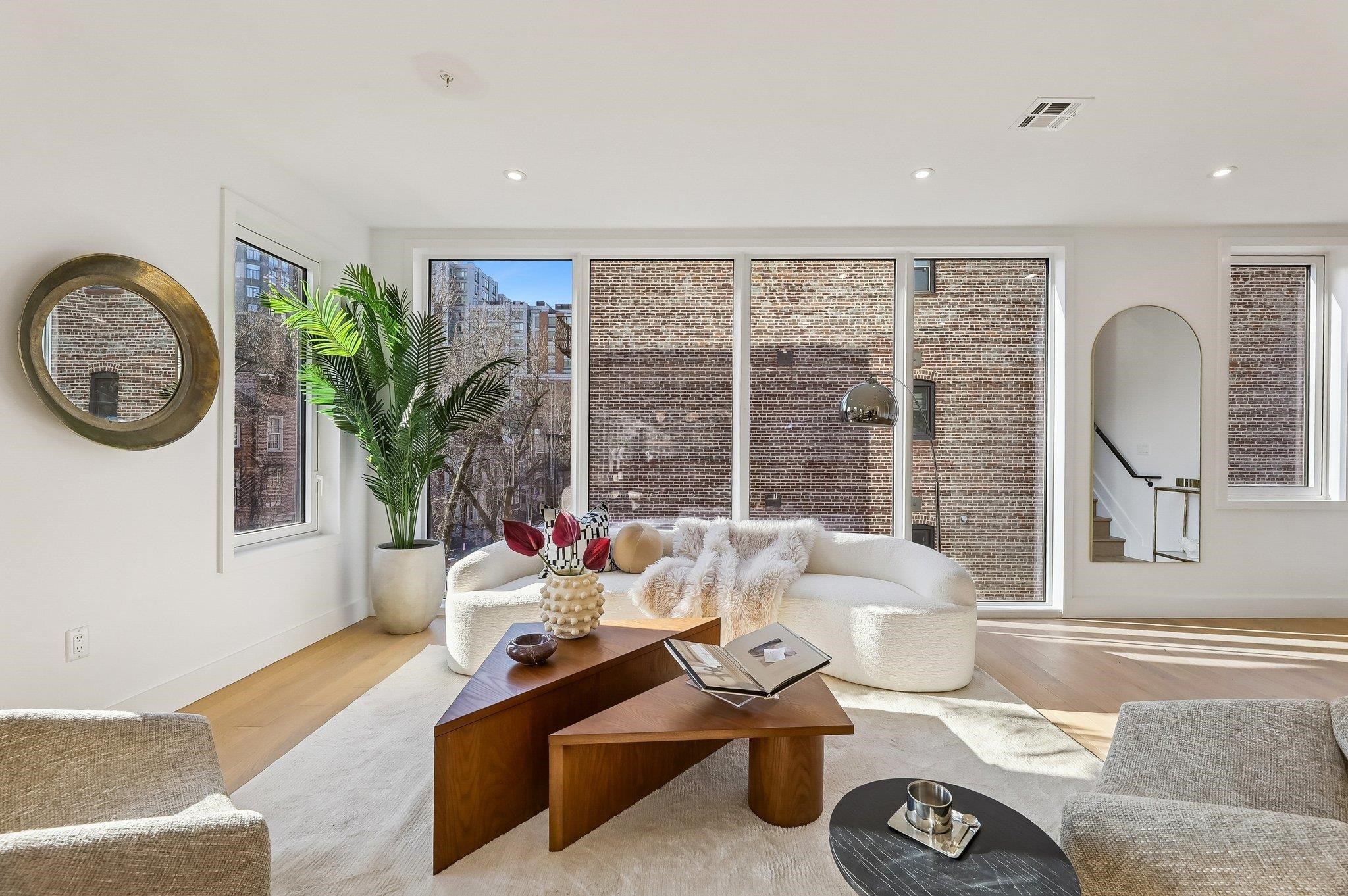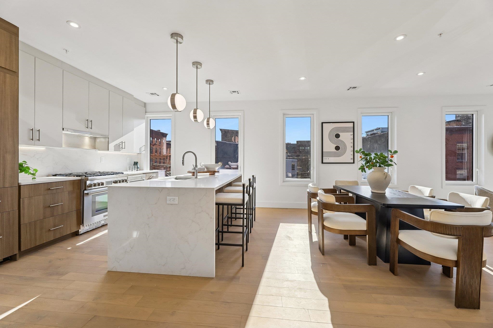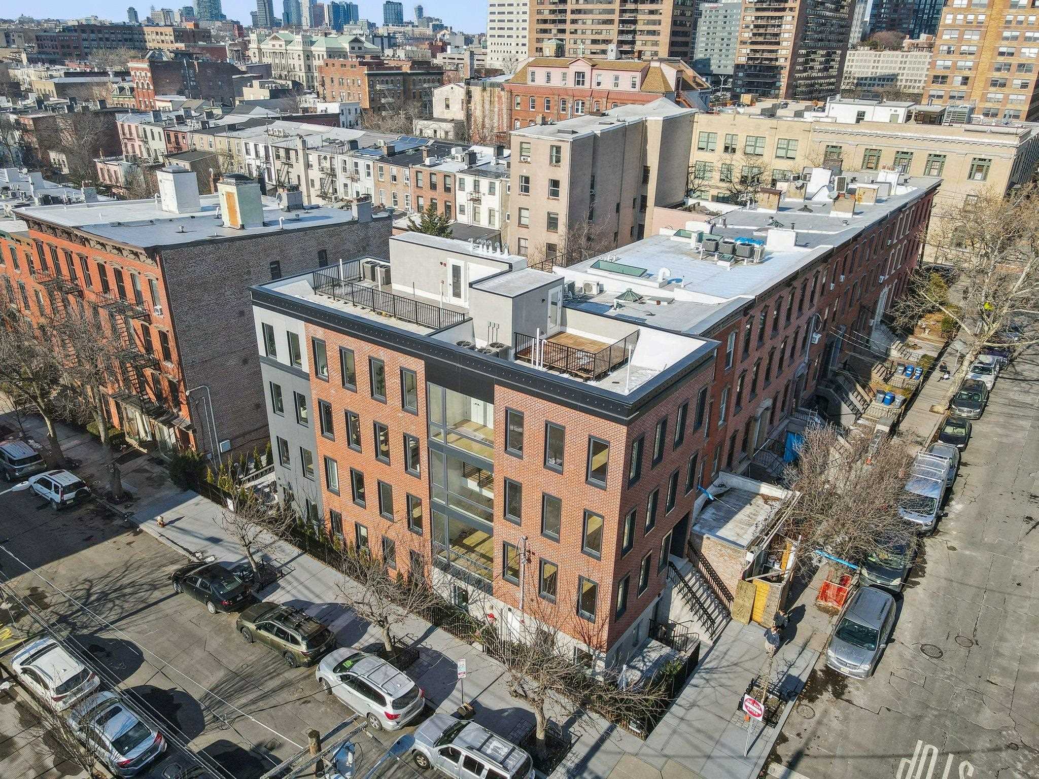 Brand New Construction in the Heart of Paulus Hook! At the crossroads of Warren and Sussex, 215 Warren sets the standards for modern, luxurious, family living. Only 3 amazing residences, with Penthouse 3 offering 2,000 square feet of opulence. This 3 bedroom, 3 full bathroom property encompasses the top two floors of the sun drenched S/W corner, offering commanding exposures in every direction. A private entrance assures complete exclusivity, as well as the feel of a free-standing home. Upon opening the front door of this residence, you are immediately taken by level of quality, refinement, and livability. Floor one of the Penthouse is dedicated to open concept living, dining, entertaining, and professional grade kitchen. Featuring gleaming wide-plank, white oak flooring, high ceilings, extensive LED recessed lighting package, full stone bathroom, and multiple closets are just the beginning. The kitchen is quite simply culinary brilliance! Equipped with a gourmet Thermador appliance suite, including paneled refrigeration, dual tone hardwood cabinetry, vented XO range hood, drawer microwave, and more Carrara Bianco quartz countertops, backsplash, and millwork than imaginable! A waterfall edged island is the perfect place for homework, conversation, and a delicious nibble. 6 oversized windows span the southern side of the residence, filling the home with brilliant natural light, and, of course, being at the top, you are enjoying completely open sky views over this renowned, historic neighborhood. On the western perimeter of the home, a full floor-to-ceiling architectural glass curtain wall, offers unbelievable light and even more privacy. Absolutely no need for window treatments here! Head upstairs, where 3 spectacular bedrooms await, with the primary being the best of them all. Featuring windows on two sides, a walk-in, California style closet, king-sized proportions, and windowed ensuite spa-bathroom, dressed in the finest stone, with dual floating vanity, fog-less backlit mirror, and oversized frameless glass shower. Your full sized W/D room is also located on this level for convenience. The outdoors is all yours, with a grand interior staircase leading to the private sky-terrace, for magical days and nights of dining, reclining, entertaining and recharging with all your family and friends. To complete the lifestyle, one garage parking space is included with purchase. Outside your front door awaits the best of dining, shopping, waterfront activities, Whole Foods Market, the coveted PS16/Bradford school district, two PATH stations, and NY Waterway ferry, for the commute dreams are made of. The facade of 215 Warren is immediately recognizable, seamlessly blending today's modern design cues with the rich, historic distinction, Paulus Hook has garnered. The rarest of opportunities to purchase a modern, family-sized, new construction property, in the most stunning neighborhood has finally arrived.