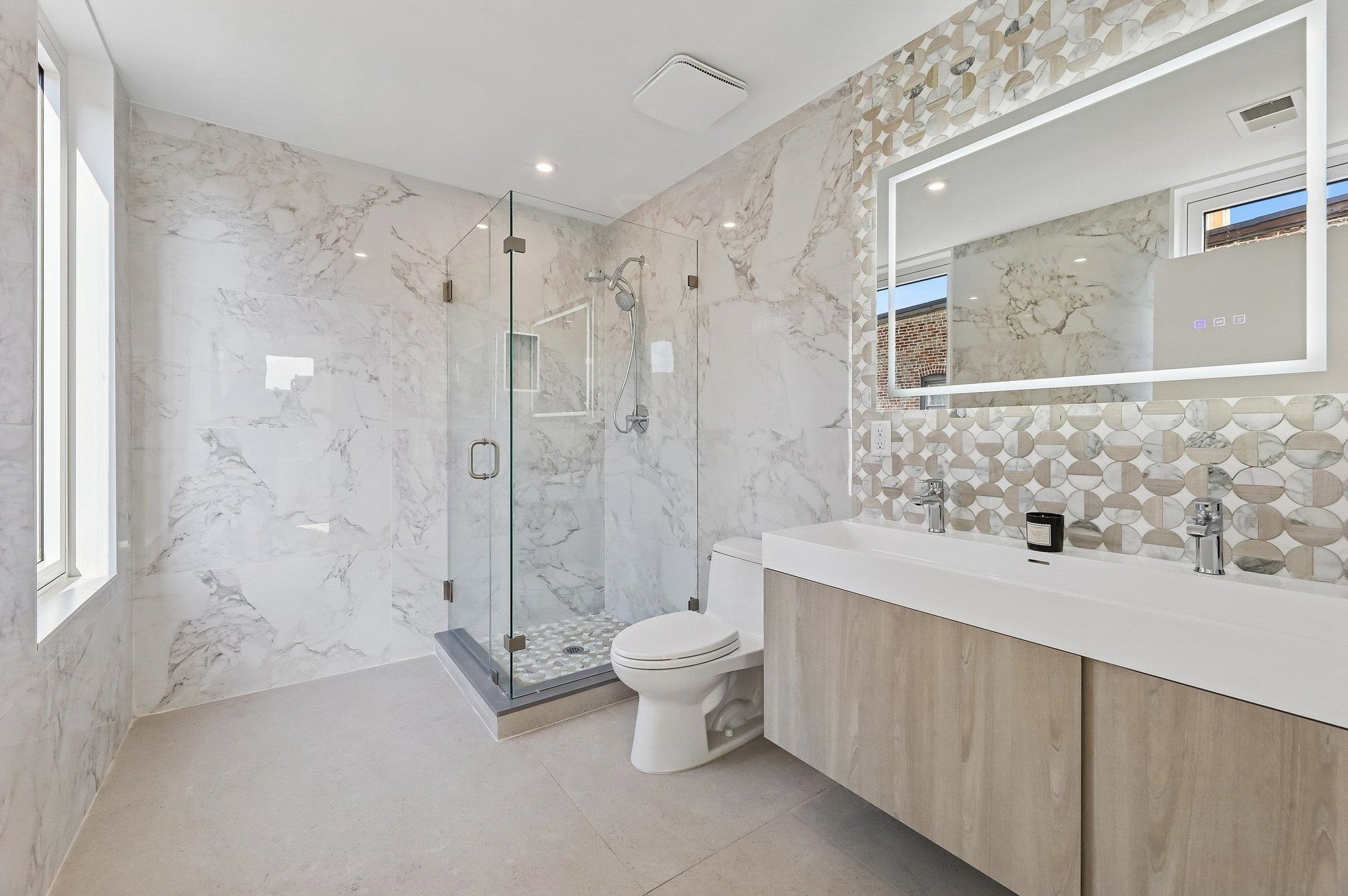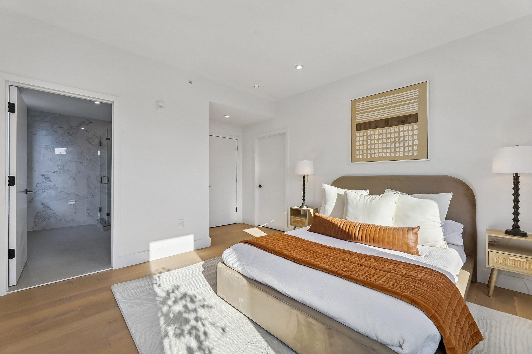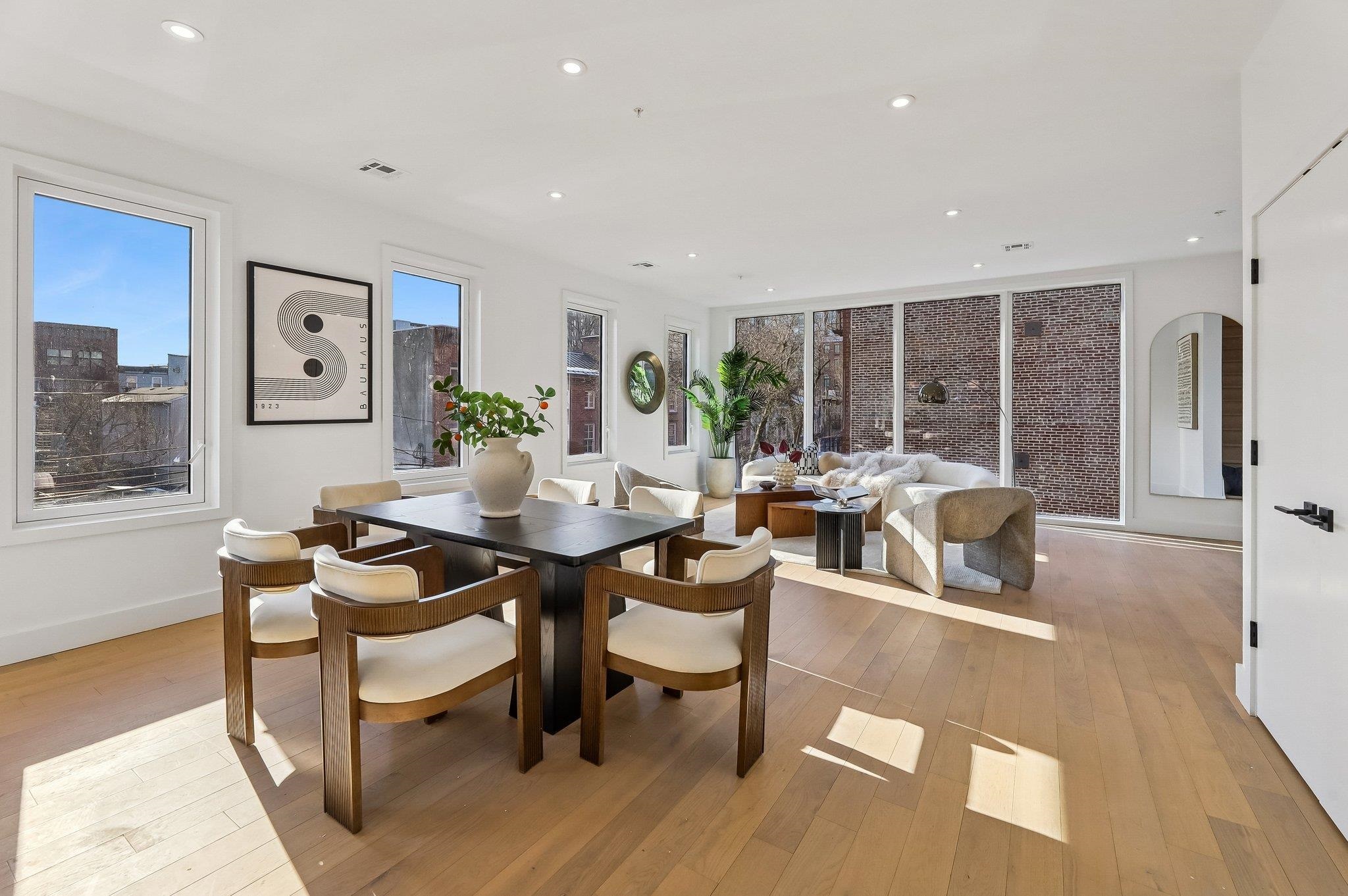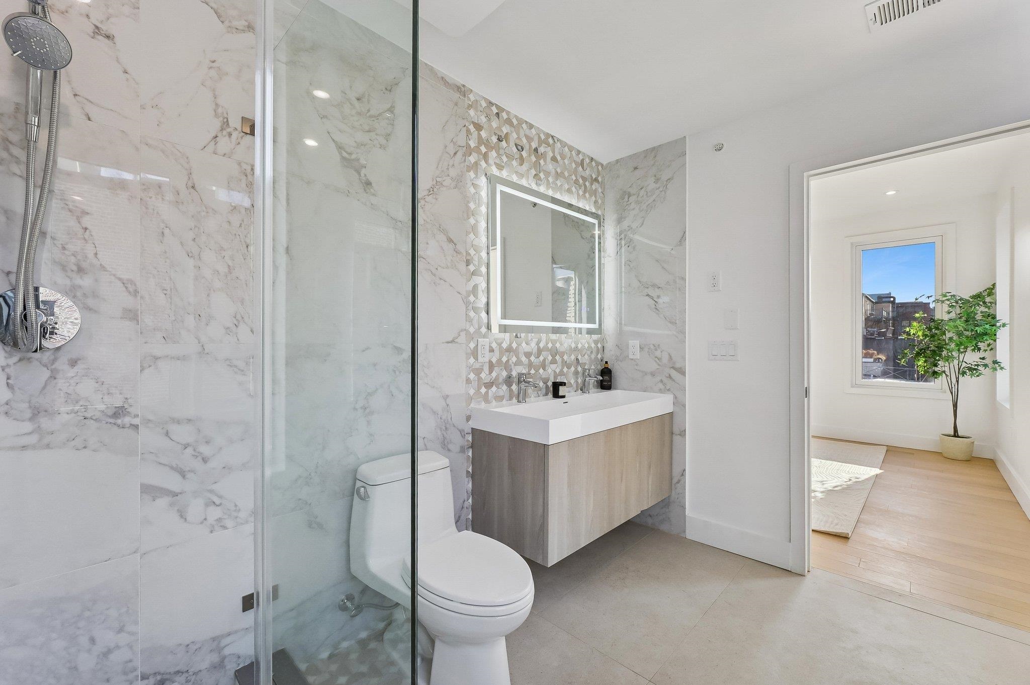 Brand New Construction in the Heart of Paulus Hook! At the crossroads of Warren and Sussex, 215 Warren sets the standards for modern, luxurious, family living. Only 3 amazing residences, with Penthouse 3 offering 2,000 square feet of opulence. This 3 bedroom, 3 full bathroom property encompasses the top two floors of the sun drenched S/W corner, offering commanding exposures in every direction. A private entrance assures complete exclusivity, as well as the feel of a free-standing home. Upon opening the front door of this residence, you are immediately taken by level of quality, refinement, and livability. Floor one of the Penthouse is dedicated to open concept living, dining, entertaining, and professional grade kitchen. Featuring gleaming wide-plank, white oak flooring, high ceilings, extensive LED recessed lighting package, full stone bathroom, and multiple closets are just the beginning. The kitchen is quite simply culinary brilliance! Equipped with a gourmet Thermador appliance suite, including paneled refrigeration, dual tone hardwood cabinetry, vented XO range hood, drawer microwave, and more Carrara Bianco quartz countertops, backsplash, and millwork than imaginable! A waterfall edged island is the perfect place for homework, conversation, and a delicious nibble. 6 oversized windows span the southern side of the residence, filling the home with brilliant natural light, and, of course, being at the top, you are enjoying completely open sky views over this renowned, historic neighborhood. On the western perimeter of the home, a full floor-to-ceiling architectural glass curtain wall, offers unbelievable light and even more privacy. Absolutely no need for window treatments here! Head upstairs, where 3 spectacular bedrooms await, with the primary being the best of them all. Featuring windows on two sides, a walk-in, California style closet, king-sized proportions, and windowed ensuite spa-bathroom, dressed in the finest stone, with dual floating vanity, fog-less backlit mirror, and oversized frameless glass shower. Your full sized W/D room is also located on this level for convenience. The outdoors is all yours, with a grand interior staircase leading to the private sky-terrace, for magical days and nights of dining, reclining, entertaining and recharging with all your family and friends. To complete the lifestyle, one garage parking space is included with purchase. Outside your front door awaits the best of dining, shopping, waterfront activities, Whole Foods Market, the coveted PS16/Bradford school district, two PATH stations, and NY Waterway ferry, for the commute dreams are made of. The facade of 215 Warren is immediately recognizable, seamlessly blending today's modern design cues with the rich, historic distinction, Paulus Hook has garnered. The rarest of opportunities to purchase a modern, family-sized, new construction property, in the most stunning neighborhood has finally arrived.
