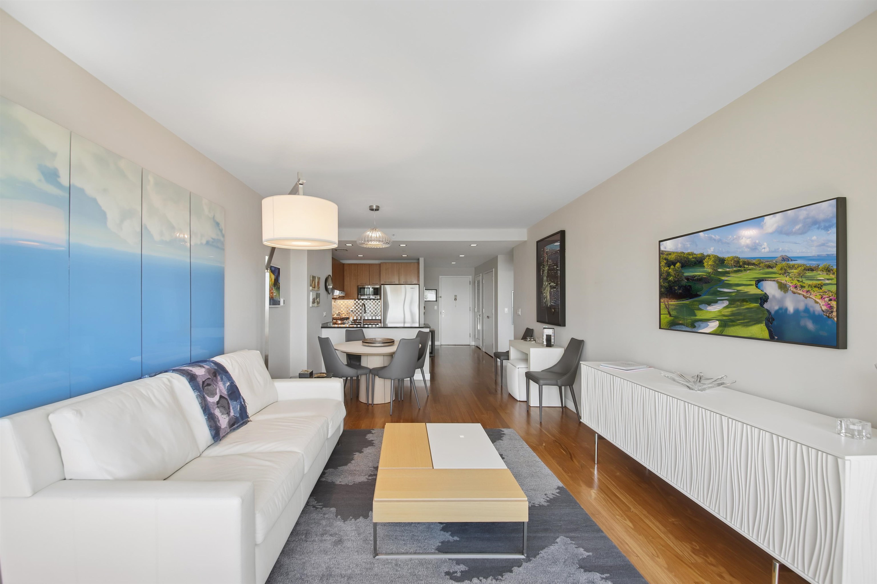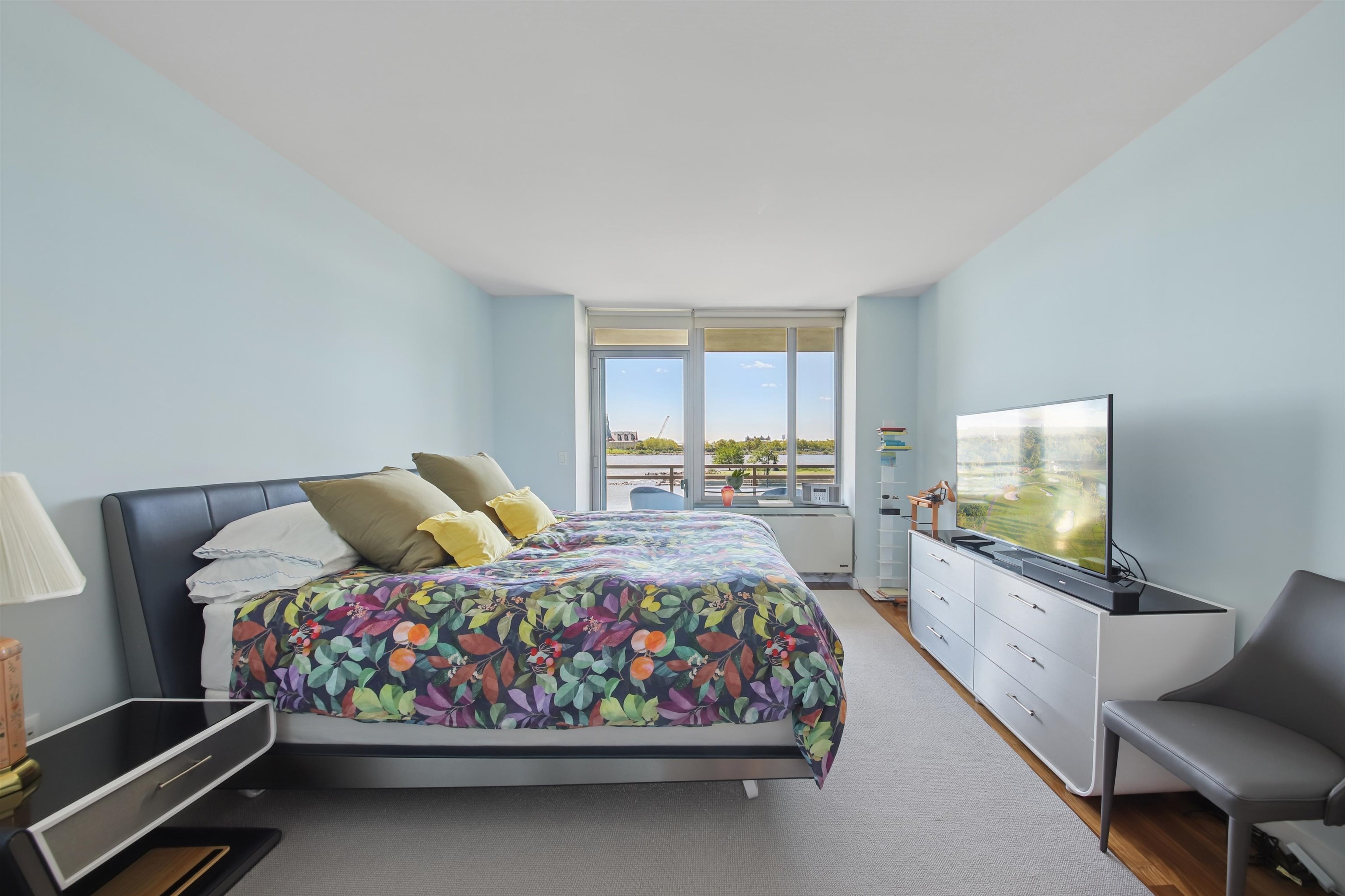 Perched directly on the Hudson River in PAULUS HOOK with the most incredible panoramic views imaginable! Spanning 1,300 interior square feet plus a massive SOUTH facing PRIVATE TERRACE. Residence 204 in renowned Liberty Terrace will impress the most discerning buyer! This opulent 2 bedroom, 2.5 bath beauty has been meticulously maintained. Massive windows frame picture postcard views of the Statue of Liberty, Verrazzano Bridge, Ellis Island, Hudson River, and beyond. The perfect layout.....a private entry foyer leads to the wide open living, dining, and chef's kitchen. Gleaming hardwood floors are offset by brilliant light filling the home throughout the day. Direct access to your huge private terrace, which has been outfitted with custom teak flooring, and is accessible from both your living area, as well as the primary bedroom. You'll feel like you're on a super yacht every day, as this home is perfectly positioned to be eye level with the waterline of the Hudson River vibrancy unfolding directly in front of you! Dine, recline, and recharge throughout the home, as your chef's kitchen is finished with s/s appliances, nero granite countertops, and abundant walnut cabinetry, while the powder room and both full baths are clad in marble with detail insets. A good night sleep is guaranteed in your king-sized bedroom sanctuary. Featuring custom California-style closets, en-suite bath with separate tub and frameless glass shower, and, of course, gentle River breezes from the completely private terrace. The second bedroom is also framed by those never ending, protected views, as well! Updated mechanicals and HVAC system, in-home W/D, and an individual garage parking space complete the picture. Full service Liberty Terrace condominium features 24/7 doorman/concierge, gym, and immediately outside your front door awaits 2 PATH stations, the NY Waterway ferry, unbelievable dining, shopping, Whole Foods Market, PS16/Bradford School district, waterfront promenade, and easy access to Rts 1, 9, 440, 78, NJ Tpk, NWK airport, and Shore Points. This is the rarest of opportunities not to be missed!