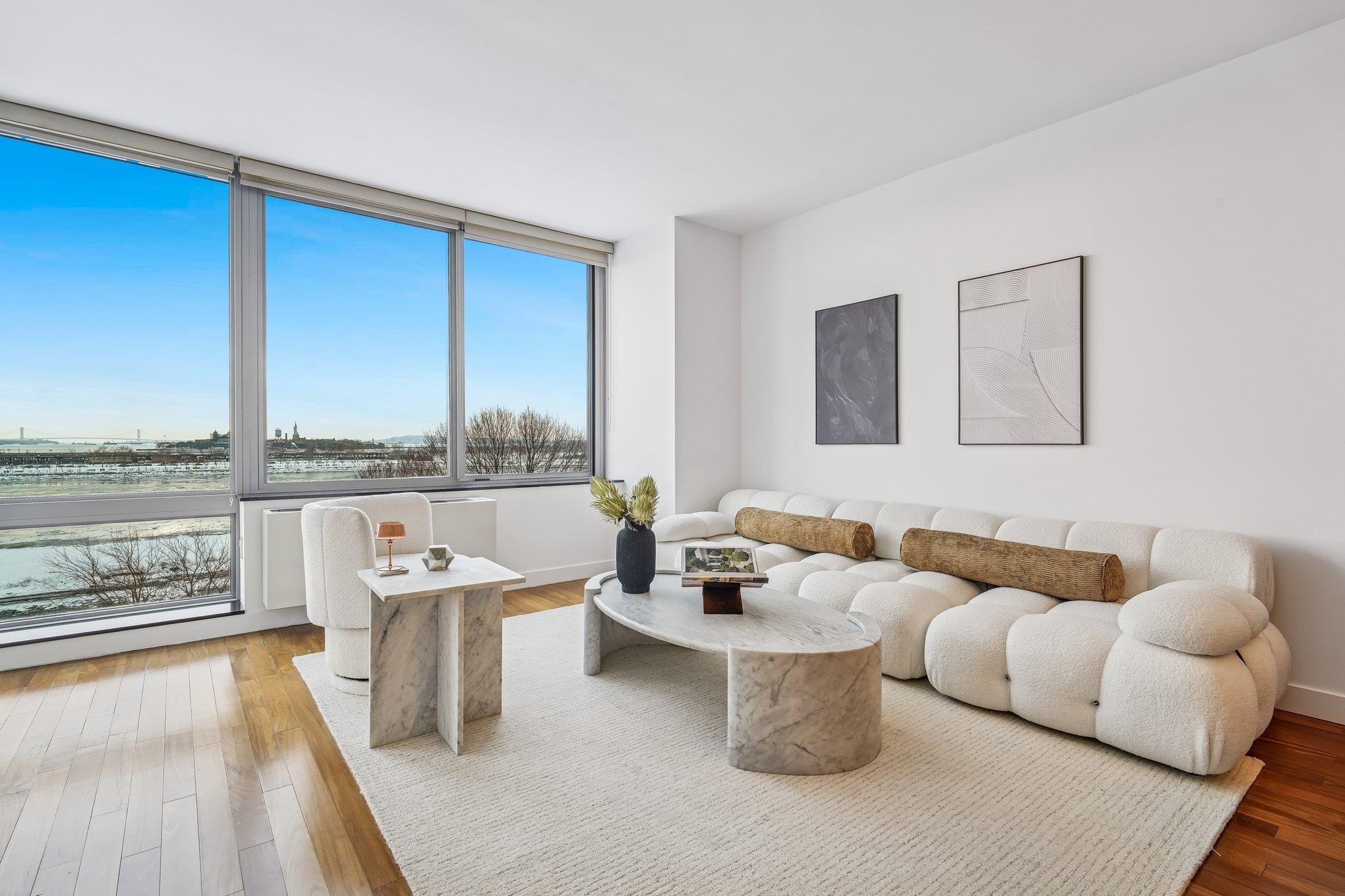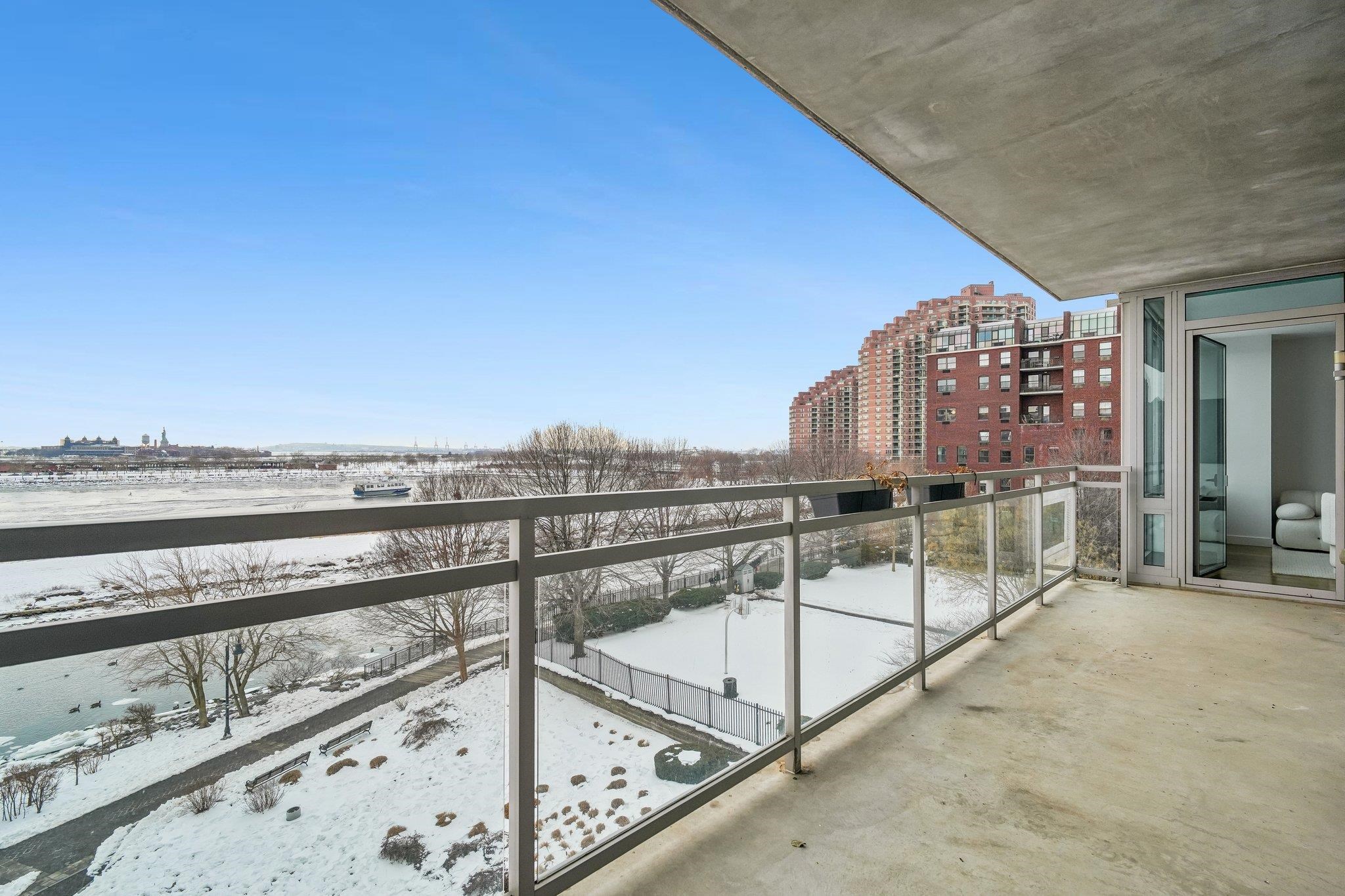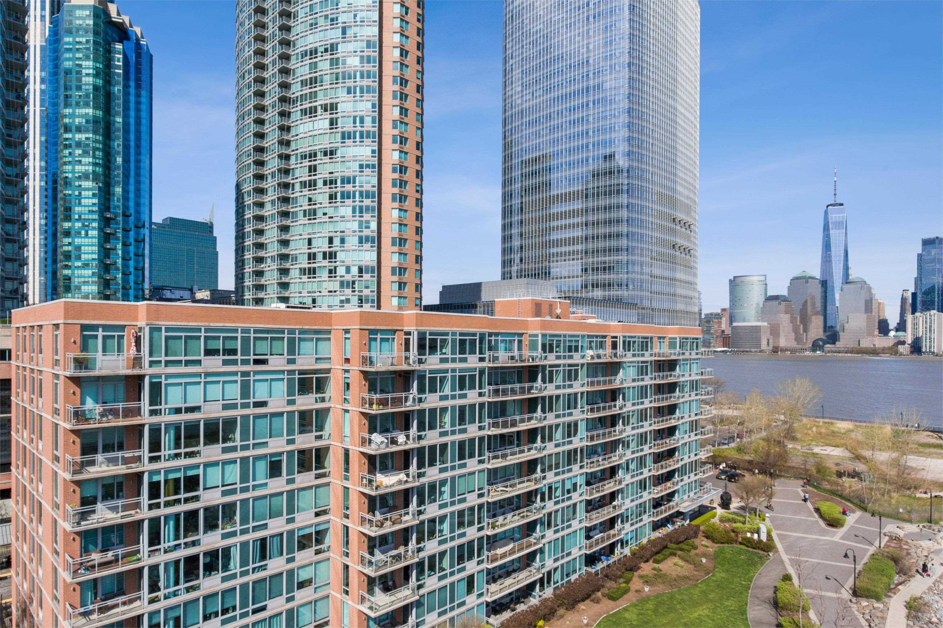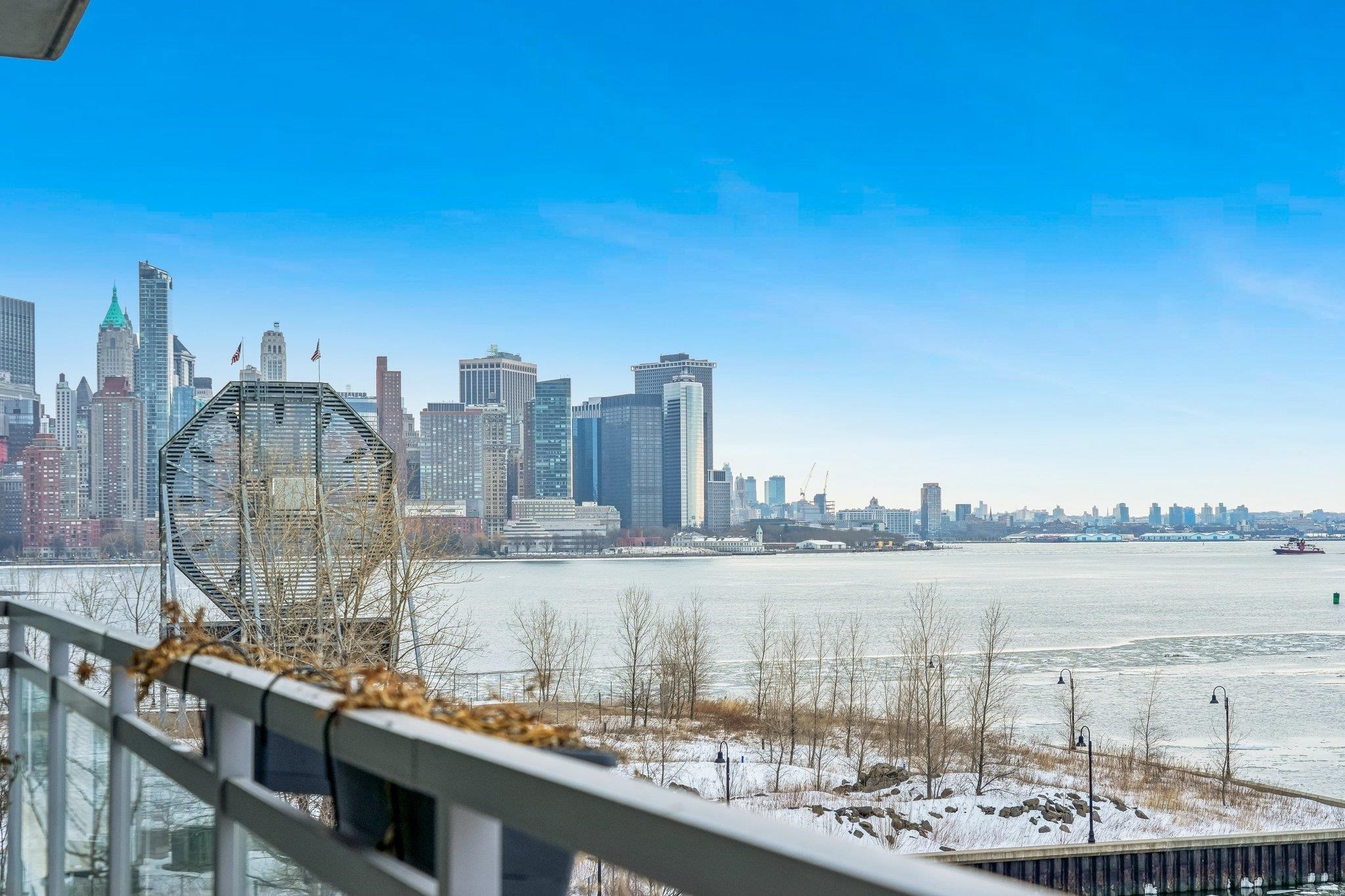 DIRECT SOUTH facing Hudson River showstopper with panoramic, landmark exposures in Liberty Terrace! Perched directly on the tip of the Hudson River in Paulus Hook, Residence 507 is a gorgeous, high floor, 2 bedroom, 2 full bath home, offering a spacious 1350 sq. feet of beautiful interior living space, plus your own private terrace. Upon entering, you are immediately greeted with outrageous, unobstructed views of the Statue of Liberty and Verrazano Bridge front and center. Direct Southern exposures ensure the entire residence is filled with natural light, while magical views over the Hudson River are your continual moving artwork at any hour of the day or night. Open concept living, dining, and chef's kitchen featuring breakfast bar, updated s/s appliances, Nero stone countertops, and abundant walnut cabinetry. Your primary suite is a sanctuary unto itself, featuring king-sized proportions, oversized walk-in closet, custom built-in modern armoire, and marble spa-bath with deep soaking tub and frameless glass shower. Access the huge private terrace from your main living space or the primary bedroom and dine, recline, and recharge in open air privacy, all while taking in those spectacular views. Want more?......1 car garage parking, hardwood floors, Benjamin Moore paints, and LG in-home W/D complete the picture. Full service Liberty Terrace condominium features 24/7doorman/concierge, gym, and immediately outside your front door awaits 2 PATH stations, the NY Waterway ferry, unbelievable dining, shopping, Whole Foods Market, PS16/Bradford School district, waterfront promenade, and easy access to Rts 1, 9, 440, 78, NJ Tpk, NWK airport, and Shore Points. This one is dreamy!