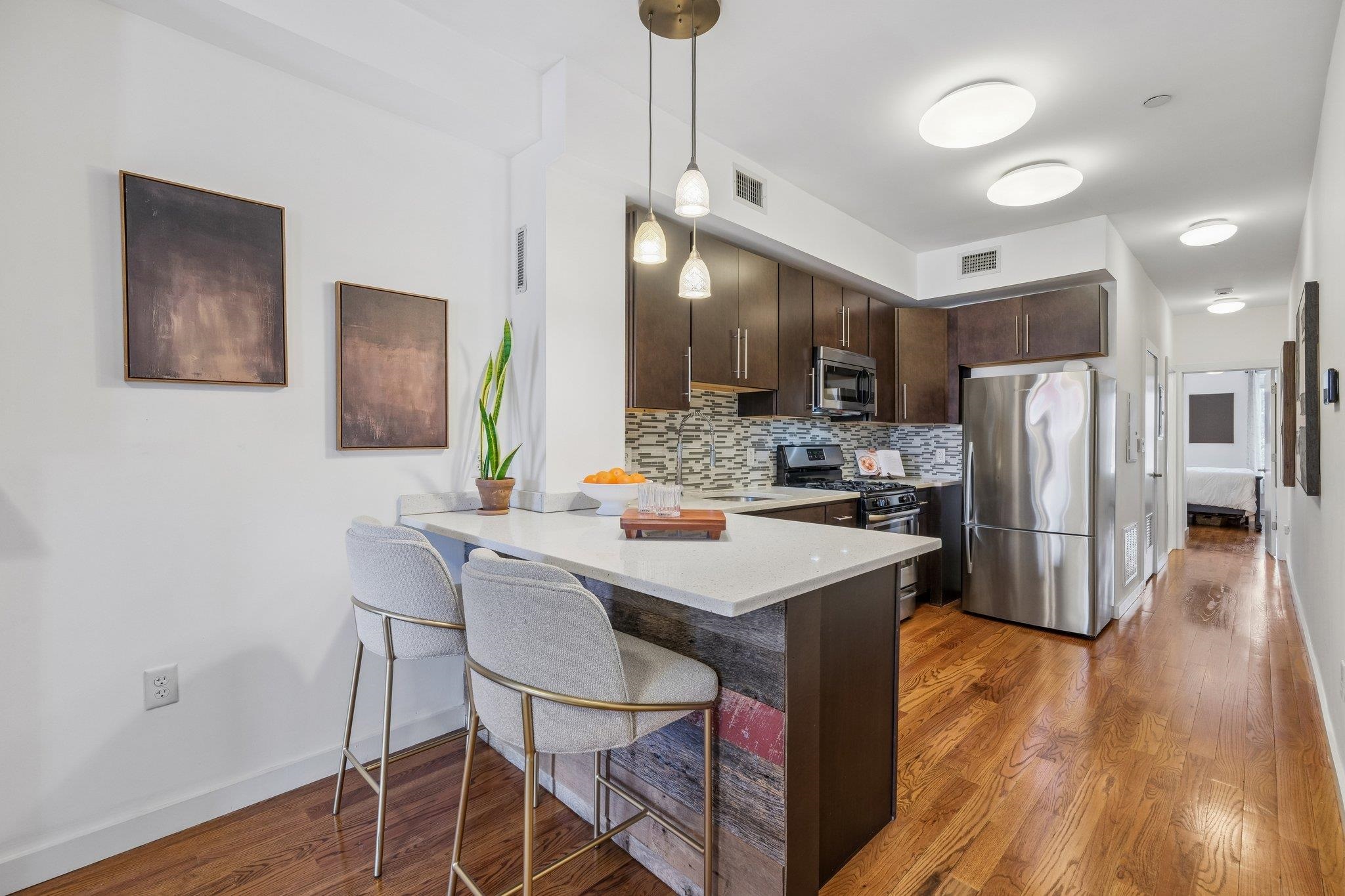 HAMILTON PARK 1 bedroom stunner with courtyard balcony! Located right outside of the park, this floor through home is in impeccable condition. Enter to gleaming hardwood floors, historic brick detail, and crisp, modern, finishes. A large living/dining area leads directly to your wide balcony overlooking quiet courtyard and treetop exposures. Chef's kitchen with stone countertops, abundant cabinetry, 2-seater breakfast bar, and s/s appliances. Spa bathroom with gleaming white subway tile, deep soaking tub, and pedestal sink. Your primary bedroom is king-sized with ample closet space and 2 large windows overlooking the notable embankment. Want more? An in-home laundry room and a storage area in the building is included! The phenomenal neighborhood has it all, easy PATH/transporation access, the stunning Park, Cangiano's, Milk Sugar Love, Chickie's, Rumba Cubana, Scram, and all the beloved shops, venues, and activities for endless enjoyment!