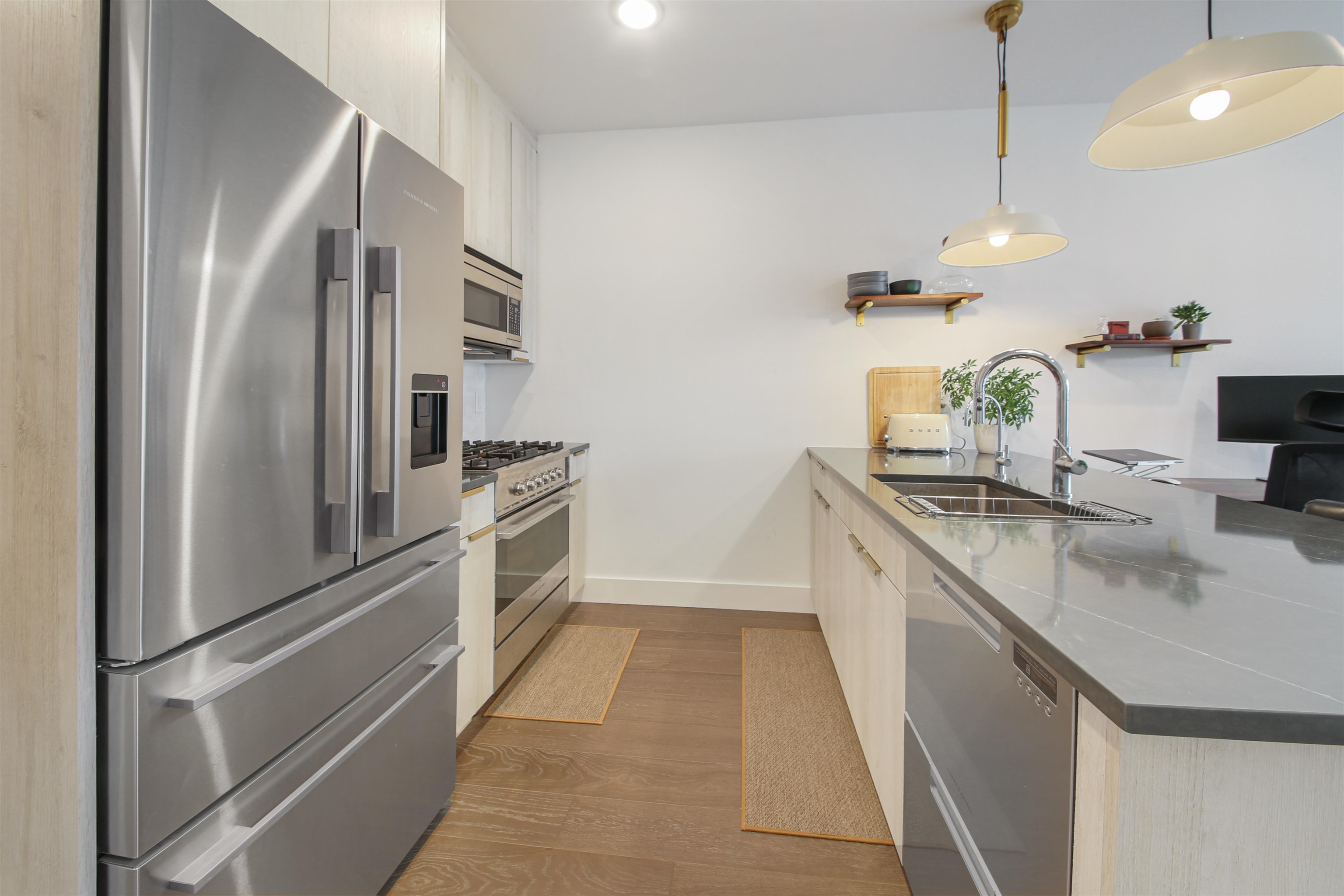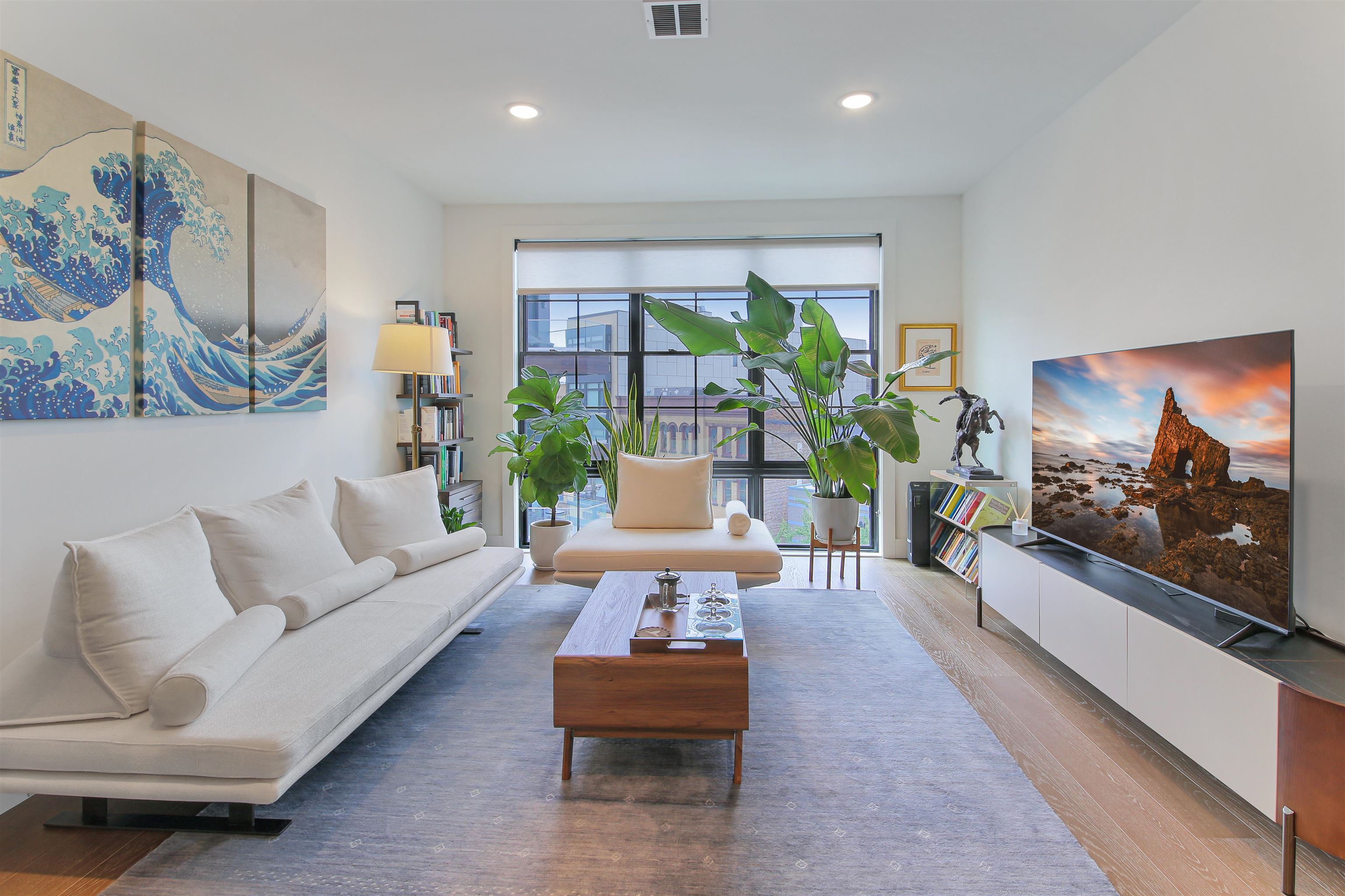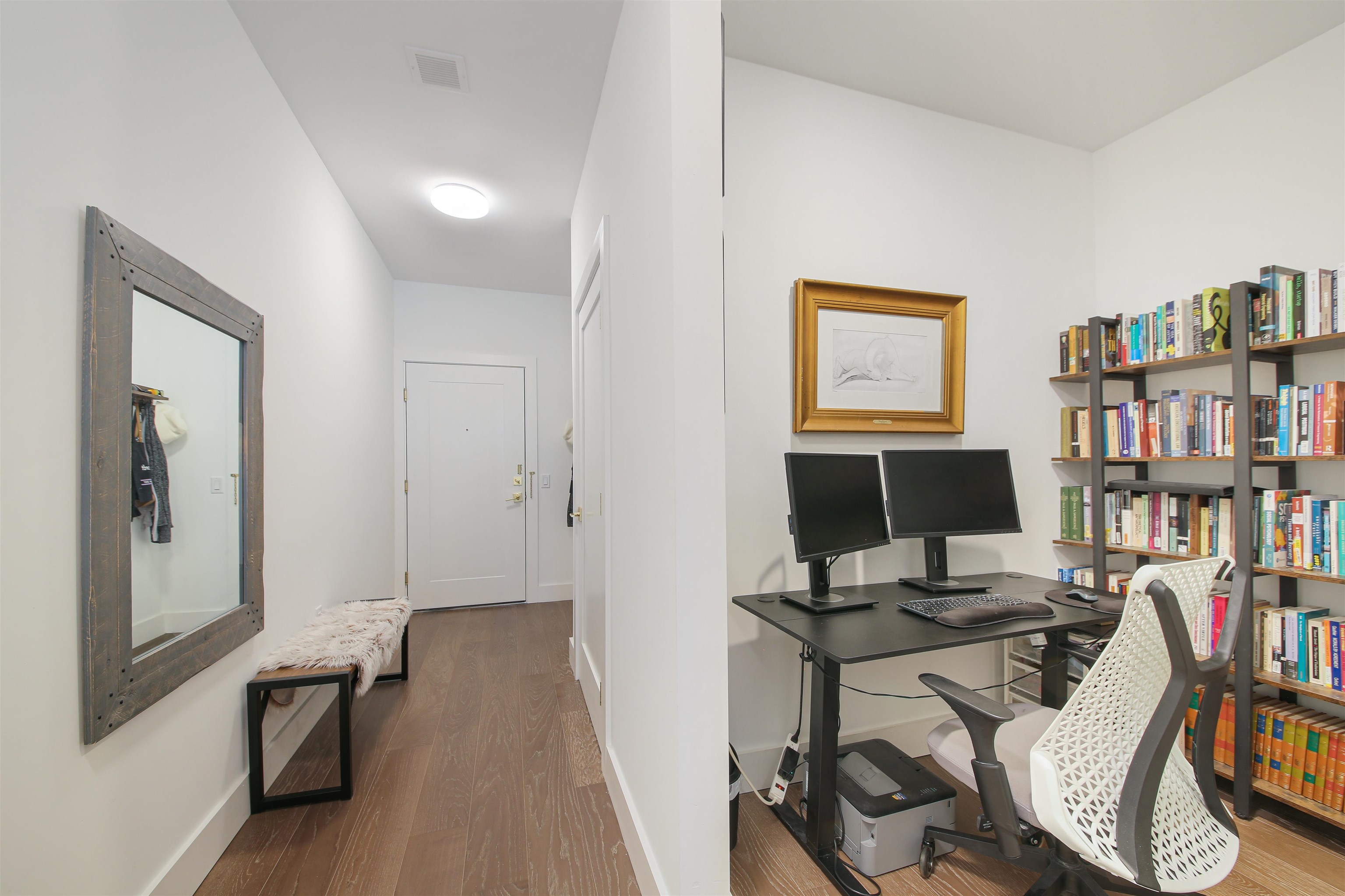 Downtown PENTHOUSE at 386 5th! Residence 504 is a beautiful, light-filled, 2 bedrooms PLUS den/home office, in a boutique, new construction, luxury, elevator building! Enter to gleaming hardwood floors, high ceilings, and sophisticated living space. Chef's kitchen featuring featuring Fisher & Paykel s/s appliances, including gas range, double drawer dishwasher, micro, french door refrigerator, stunning volcano grey quartz countertops, offset with top of the line cabinetry finished in natural oak. Primary bedroom suite with fabulous closet space, and spa-like stone bath! Another beautifully appointed bath and large home office/flex room await on the other side of the home. Central HVAC, full size W/D, designer lighting and hardware, and oversized windows complete the picture. Building features Butterfly MX virtual doorman, package valet, and bike storage. Outside your front door awaits great restaurants (Prato, Jane Doe, Madame Claude, Gussy's Cafe, Cellar 335, etc.) shopping, nightlife, and the Grove St. PATH is right up the street!